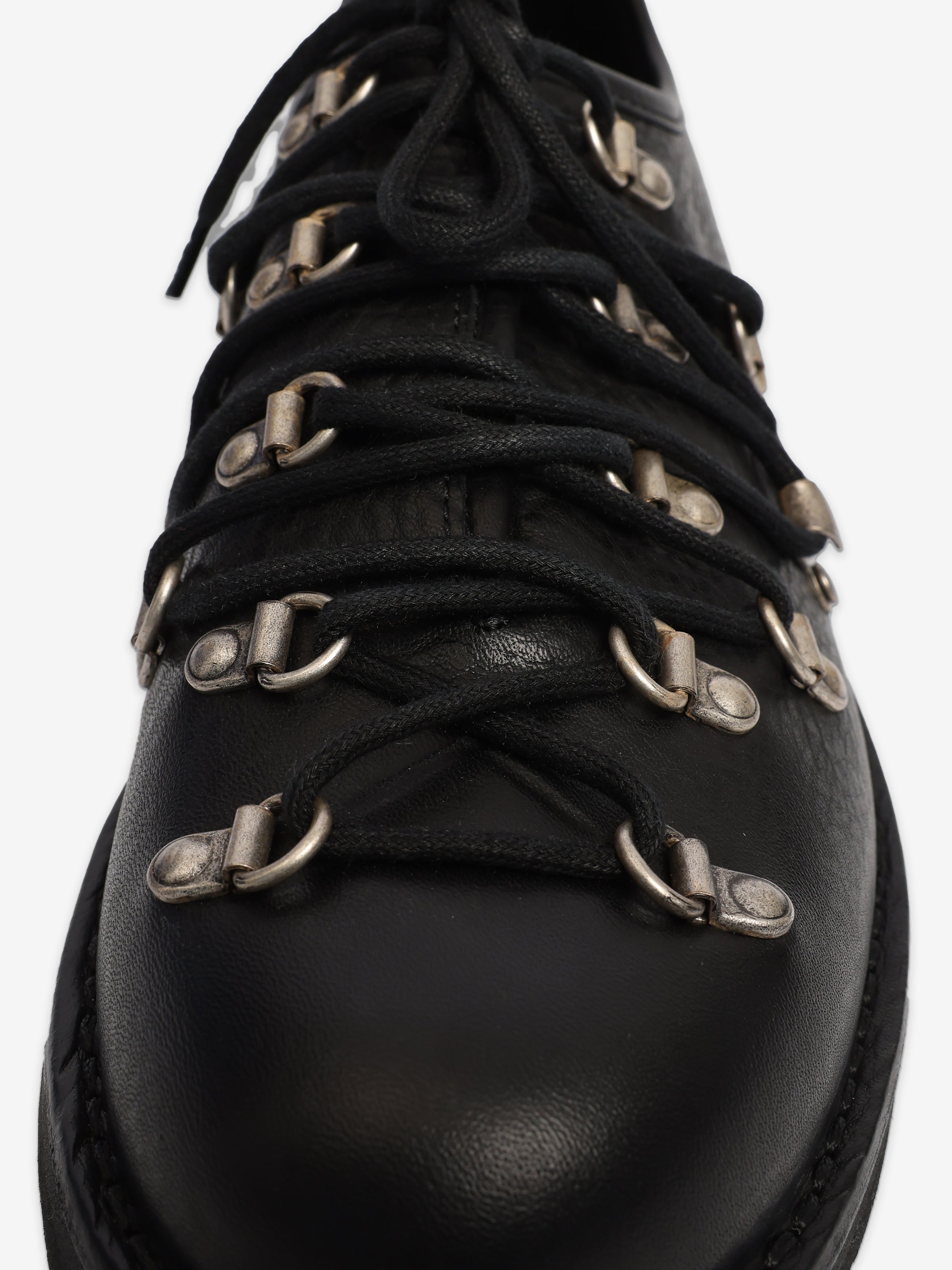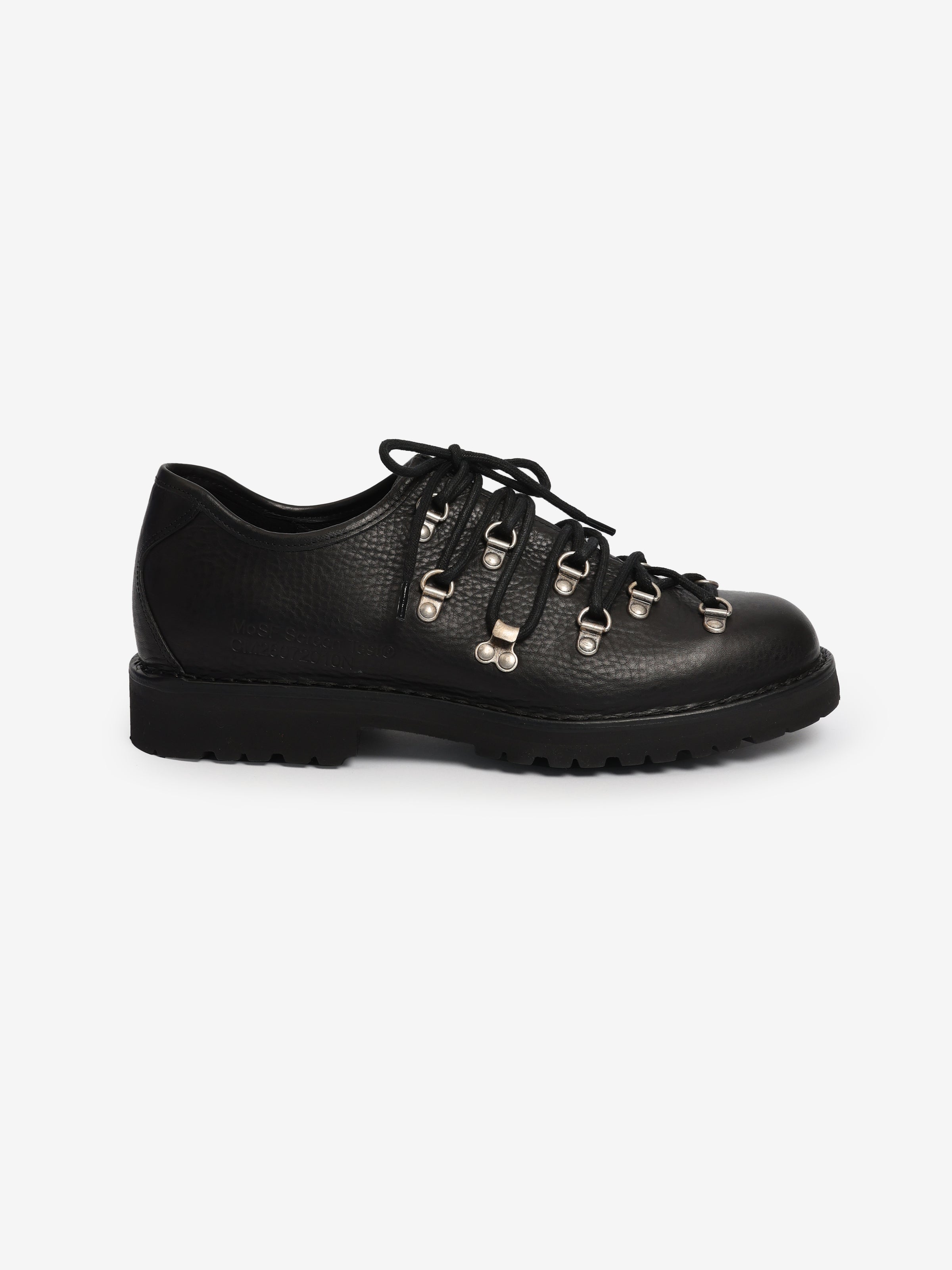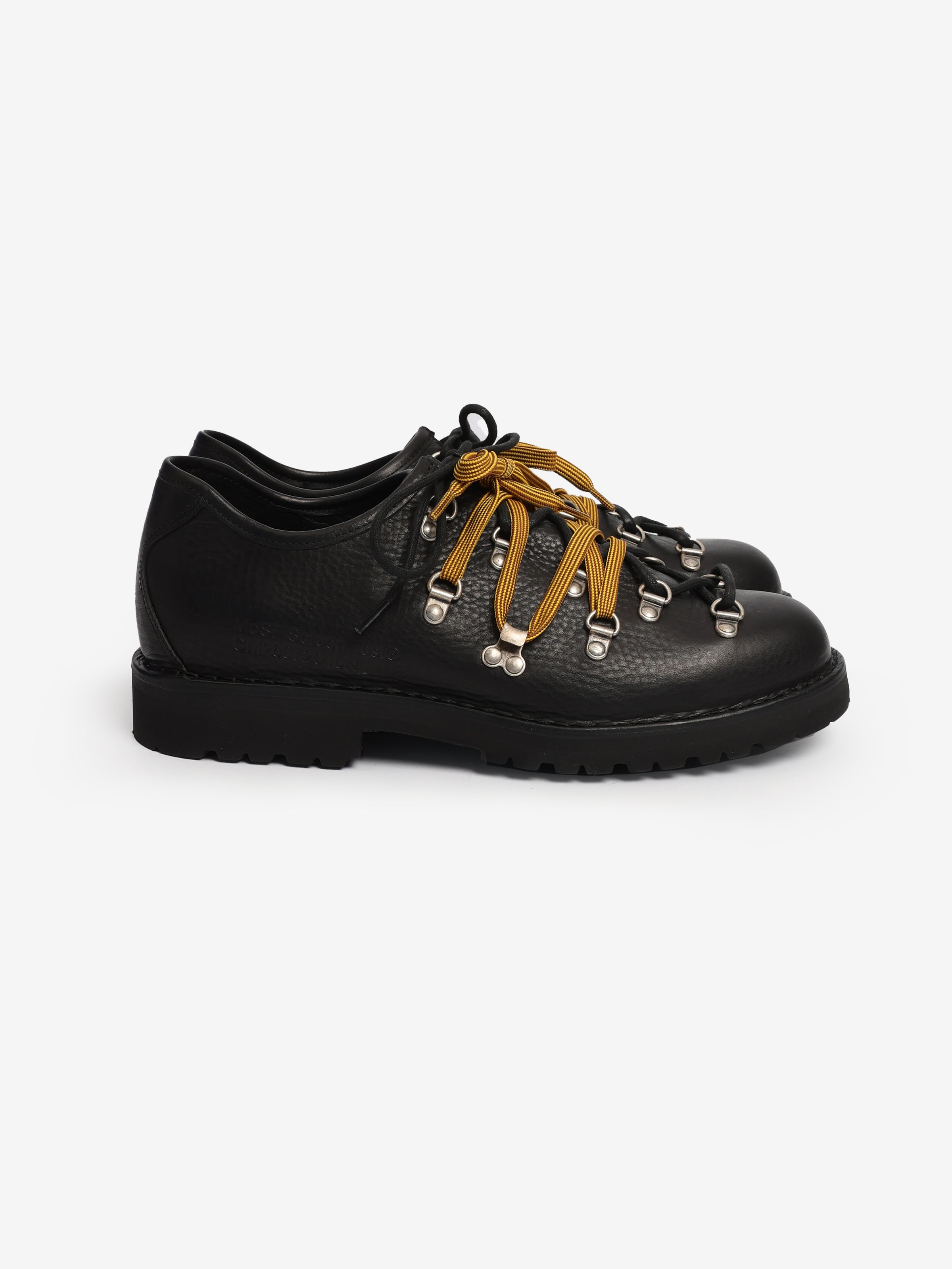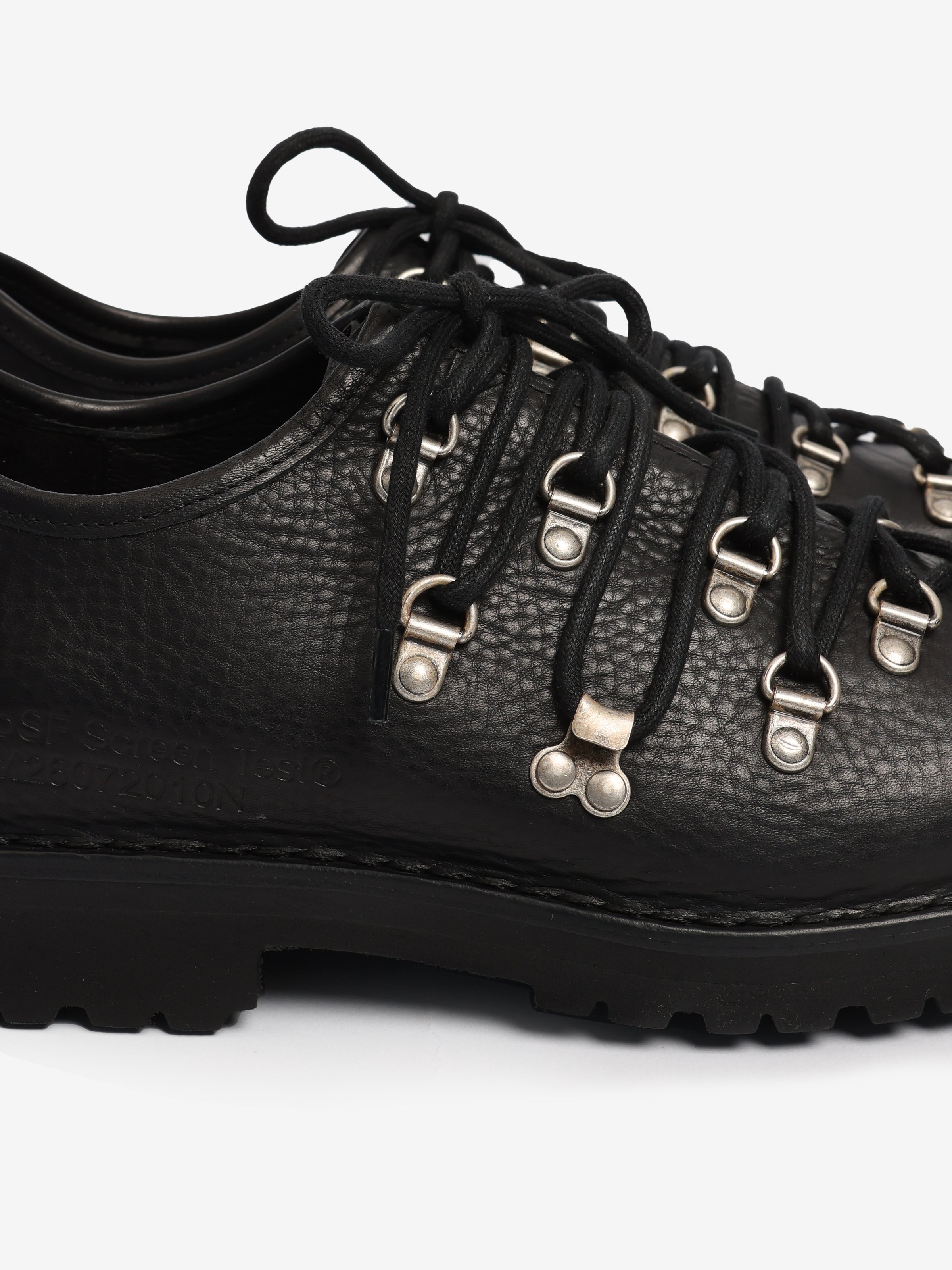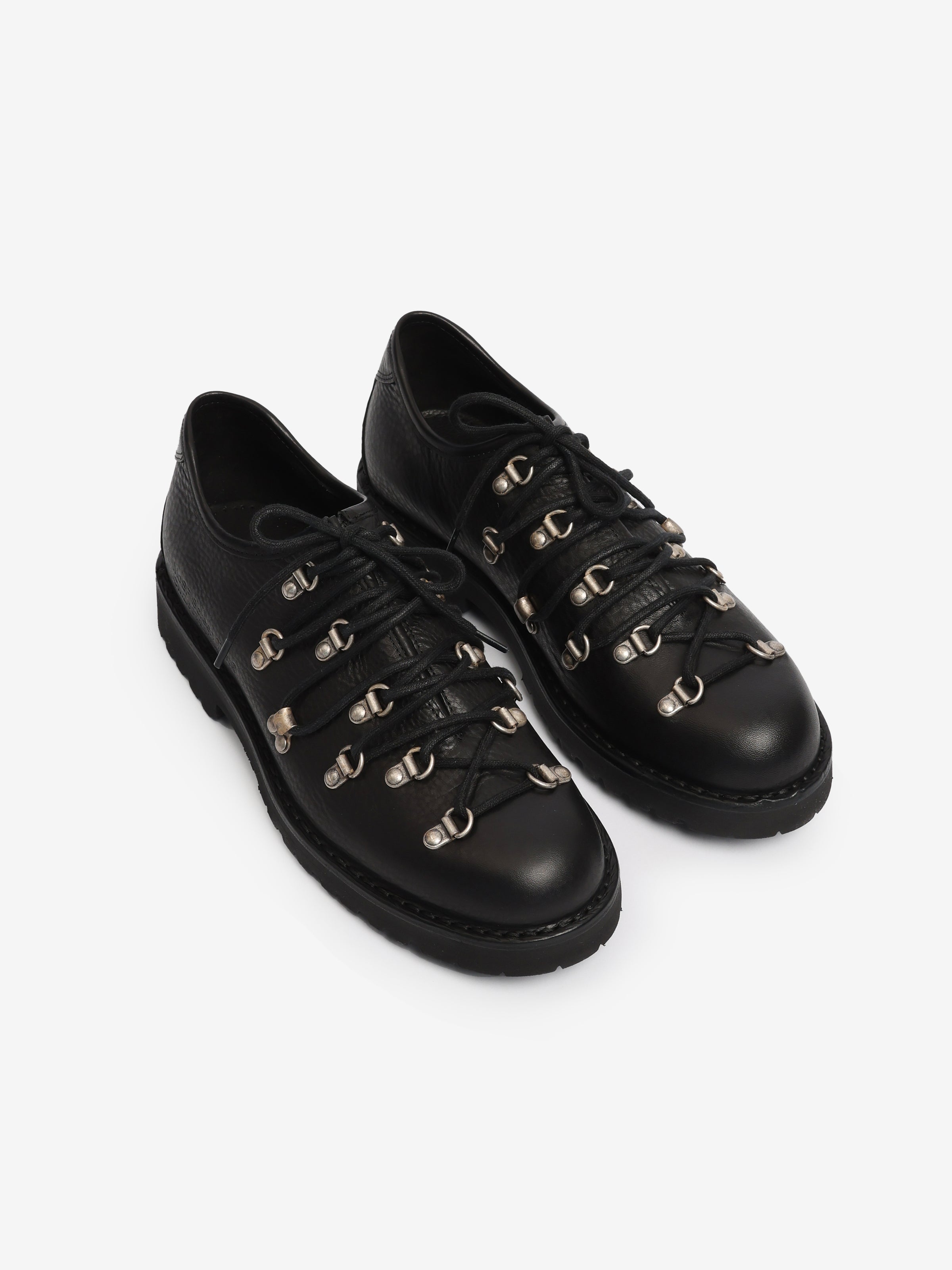 The Euclid Low Hiking Shoe is handmade in Italy from Toscano Voltano leather with a low-cut hiking profile and a Vibram® sole. They feature a custom SCRT® double lace system, iron D-rings and speed hooks with a vintage patina effect, and debossed detailing on the heel and innersole. The shoe is supplied with two additional sets of laces, a leather brush, and a custom box.