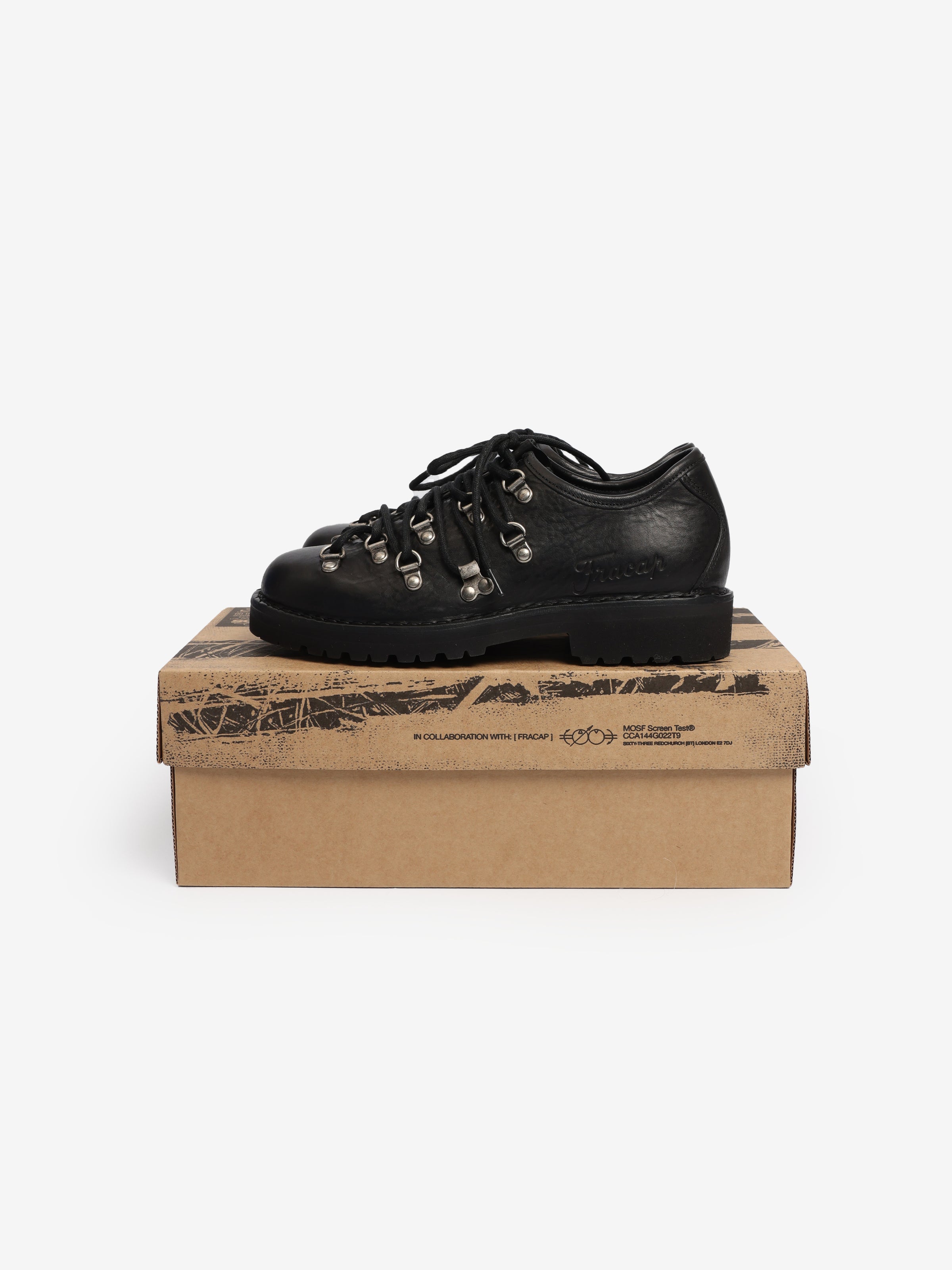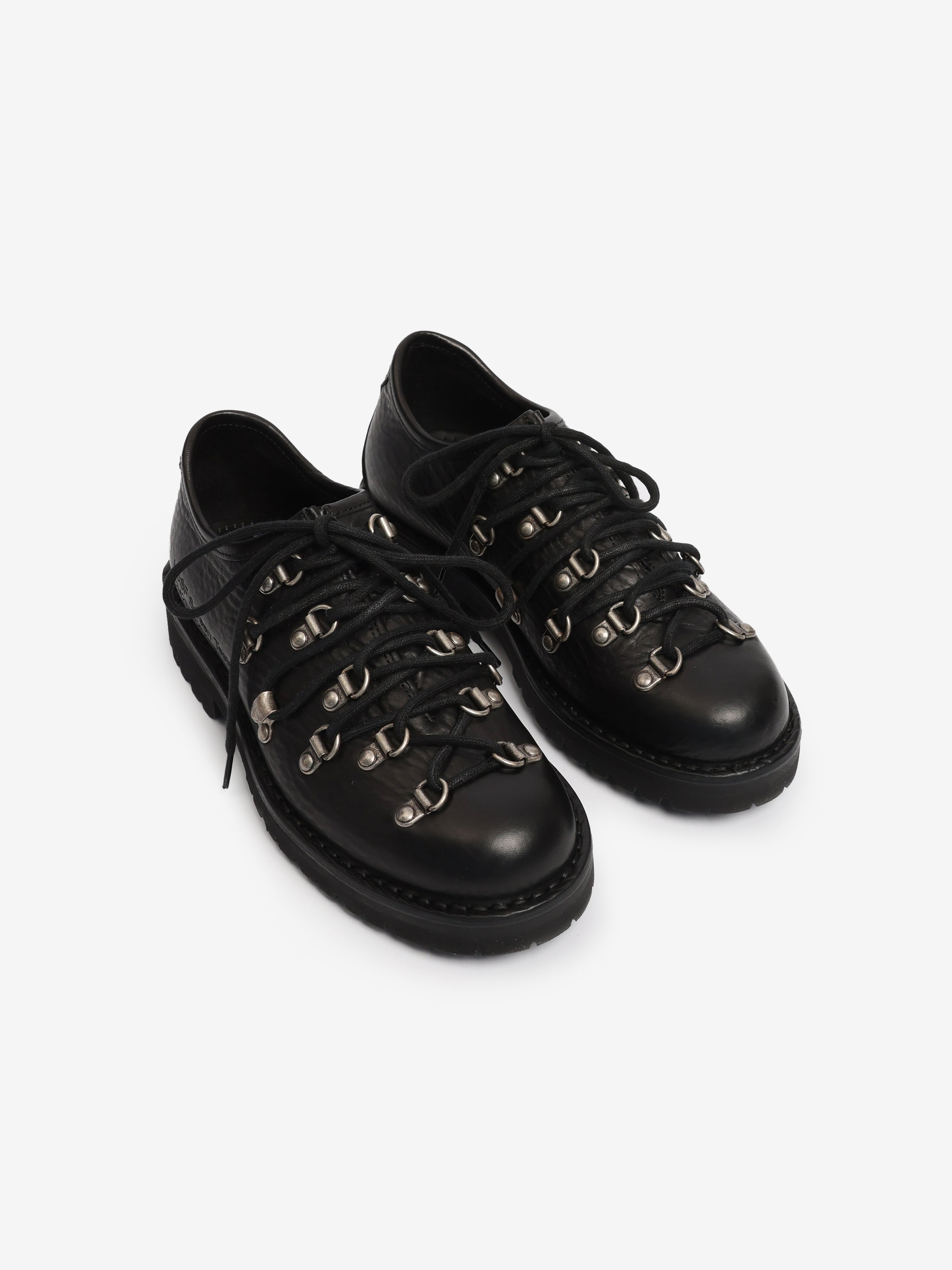 The Euclid Low Hiking Shoe is handmade in Italy from Toscano Voltano leather with a low-cut hiking profile and a Vibram® sole. They feature a custom SCRT® double lace system, iron D-rings and speed hooks with a vintage patina effect, and debossed detailing on the heel and innersole. The shoe is supplied with two additional sets of laces, a leather brush, and a custom box.
