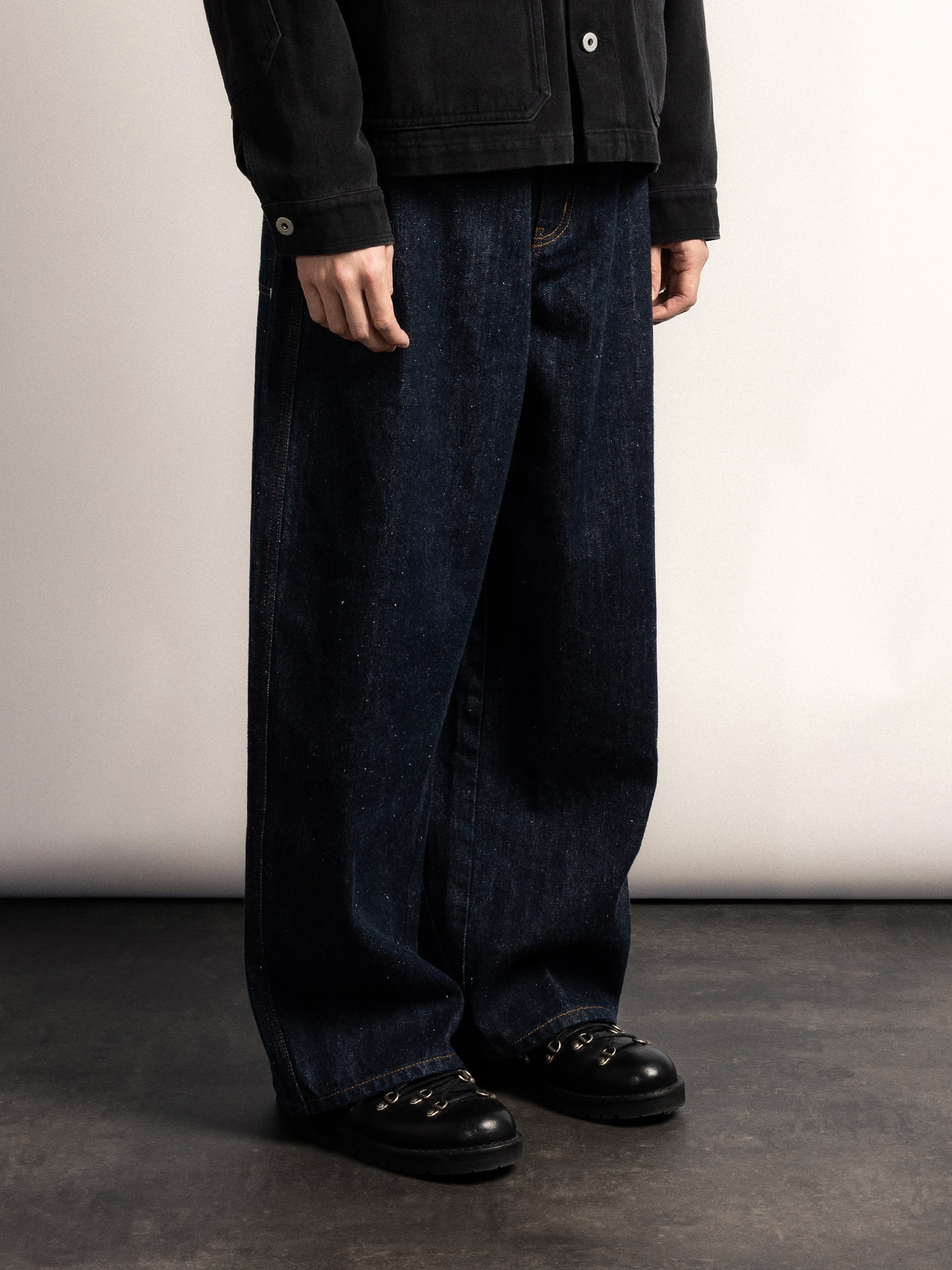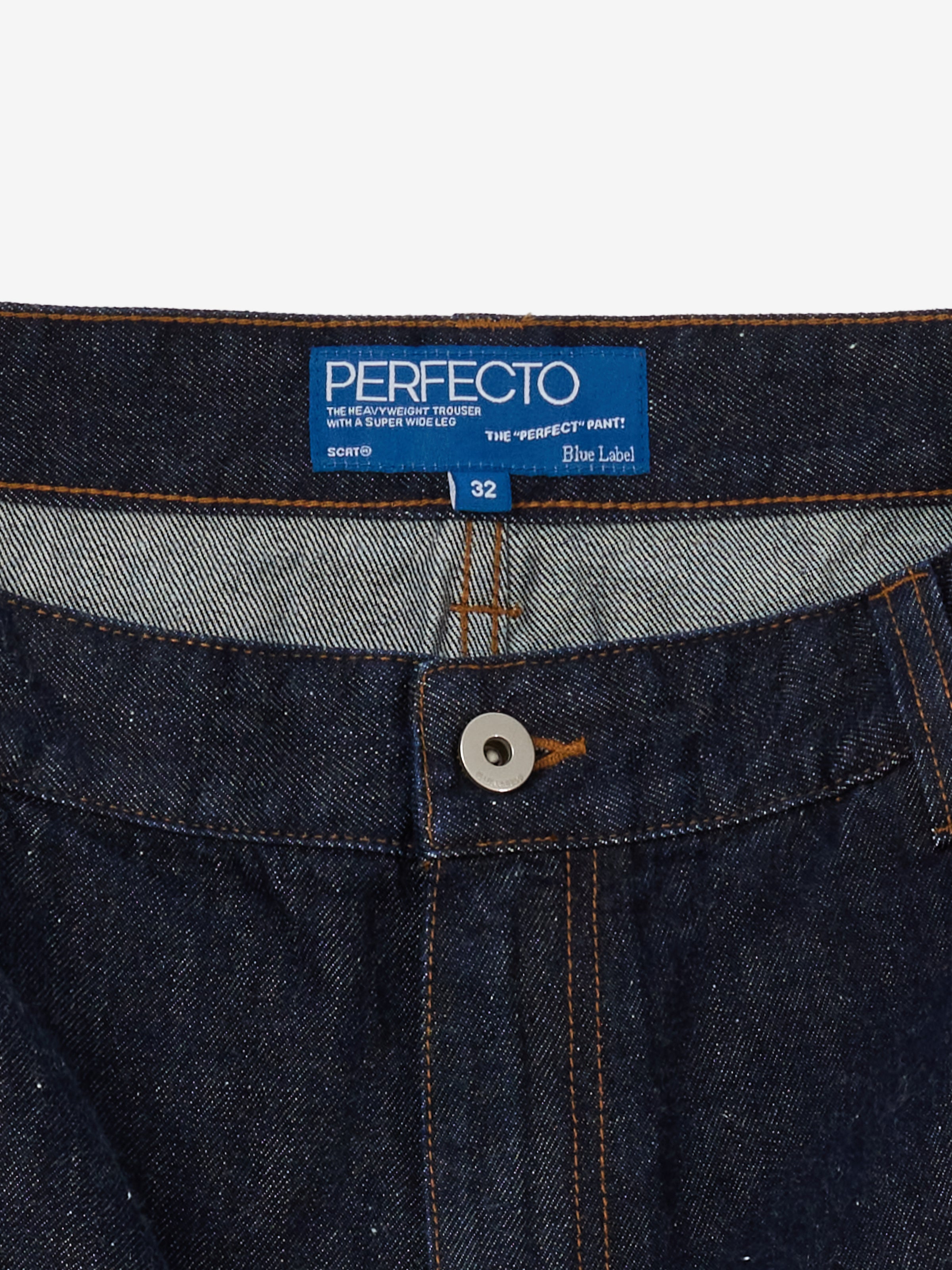 The PERFECTO® Wide Denim Pant is made from 13oz selvedge neppy denim. The wide-leg shape creates a relaxed, structured profile. The pant is made with reinforced triple-stitch construction and finished with our signature Blue Label® matte silver hardware.