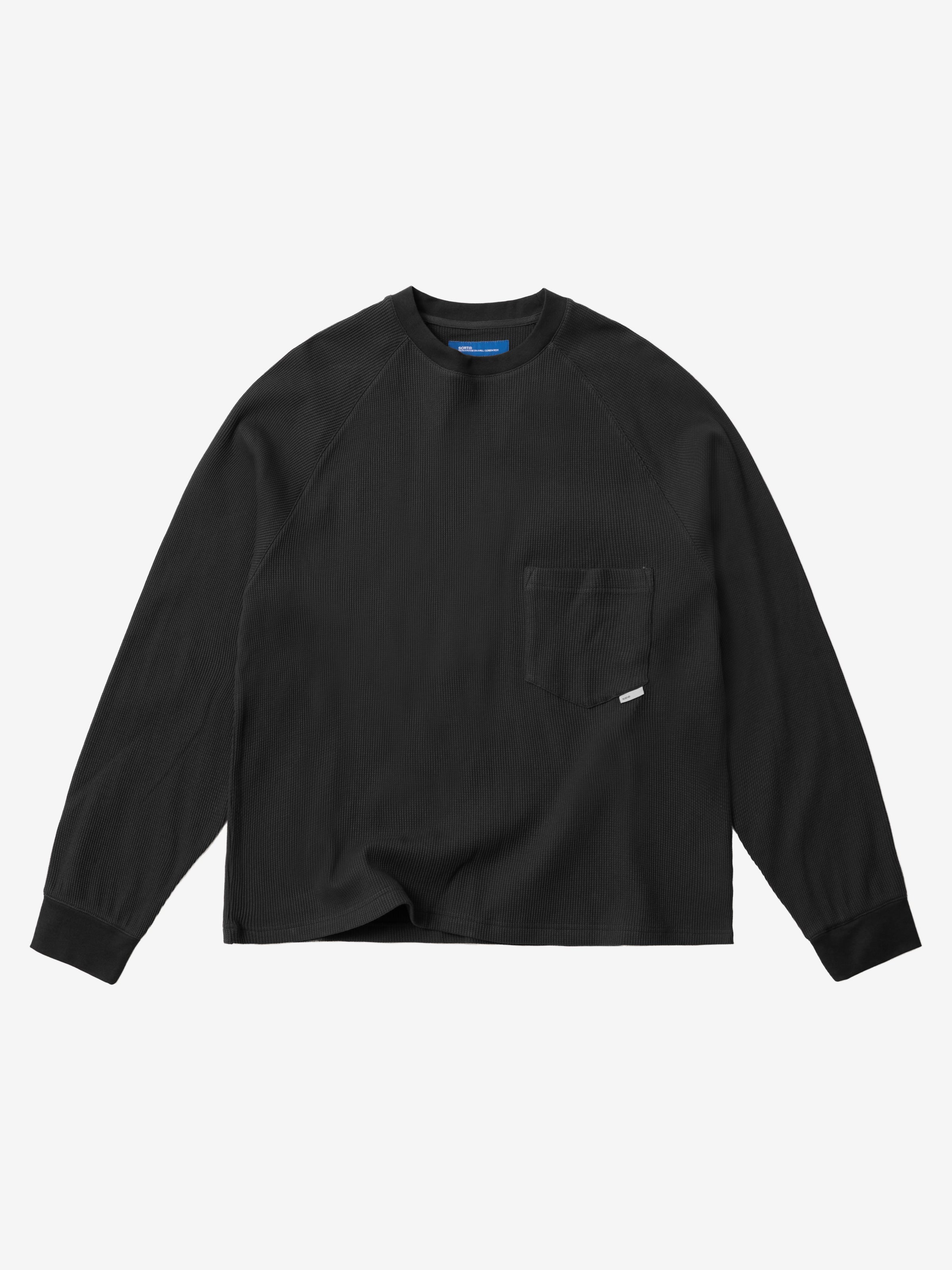 Designed with raglan sleeves for a relaxed fit and easy movement. The longsleeve includes a single dropped chest patch pocket, ribbed cuffs, and clean topstitch detailing throughout.