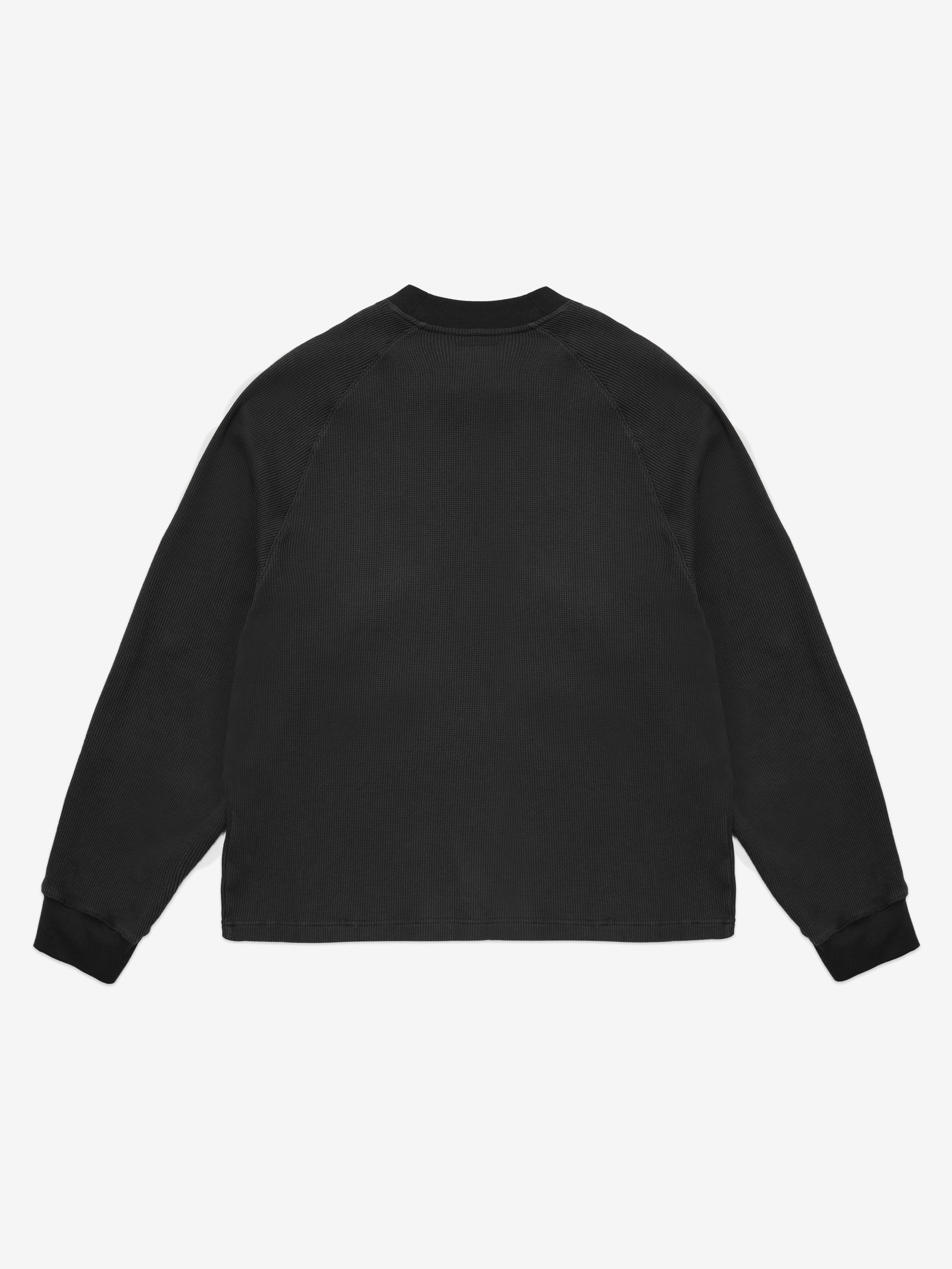 The Waffle Longsleeve is made from a 290GSM waffle knit using a 95% cotton / 5% elastane blend. The textured fabric offers breathability, subtle stretch, and long-lasting structure.