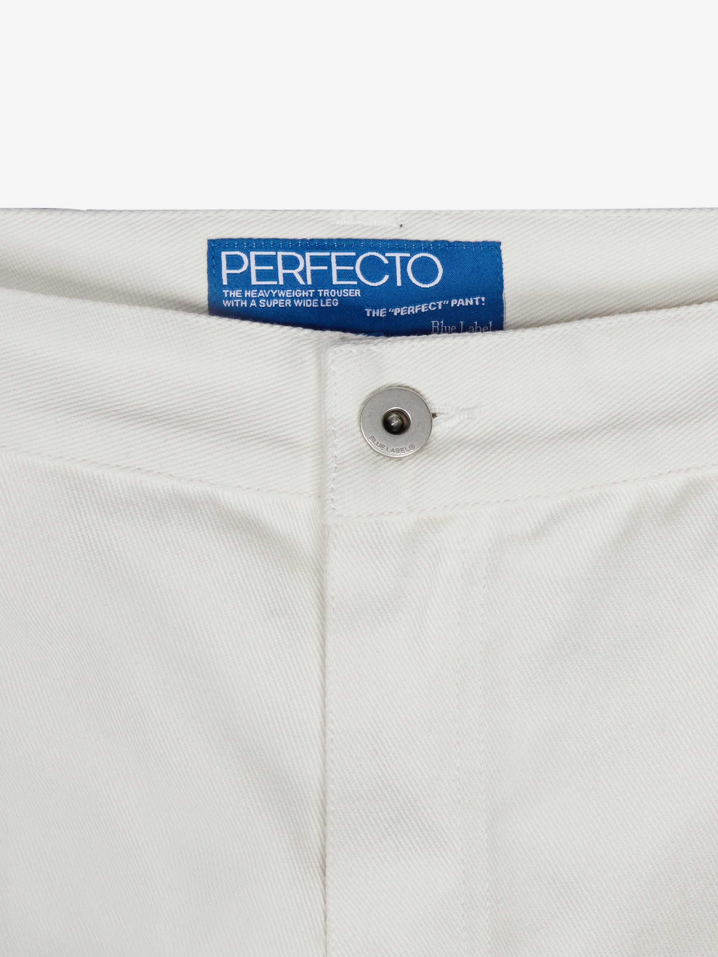 The PERFECTO® Wide Pant is cut from a durable 380gsm brushed cotton twill. The wide-leg shape creates a relaxed, structured profile. The pant is made with reinforced triple-stitch construction and finished with our signature Blue Label® matte silver hardware.