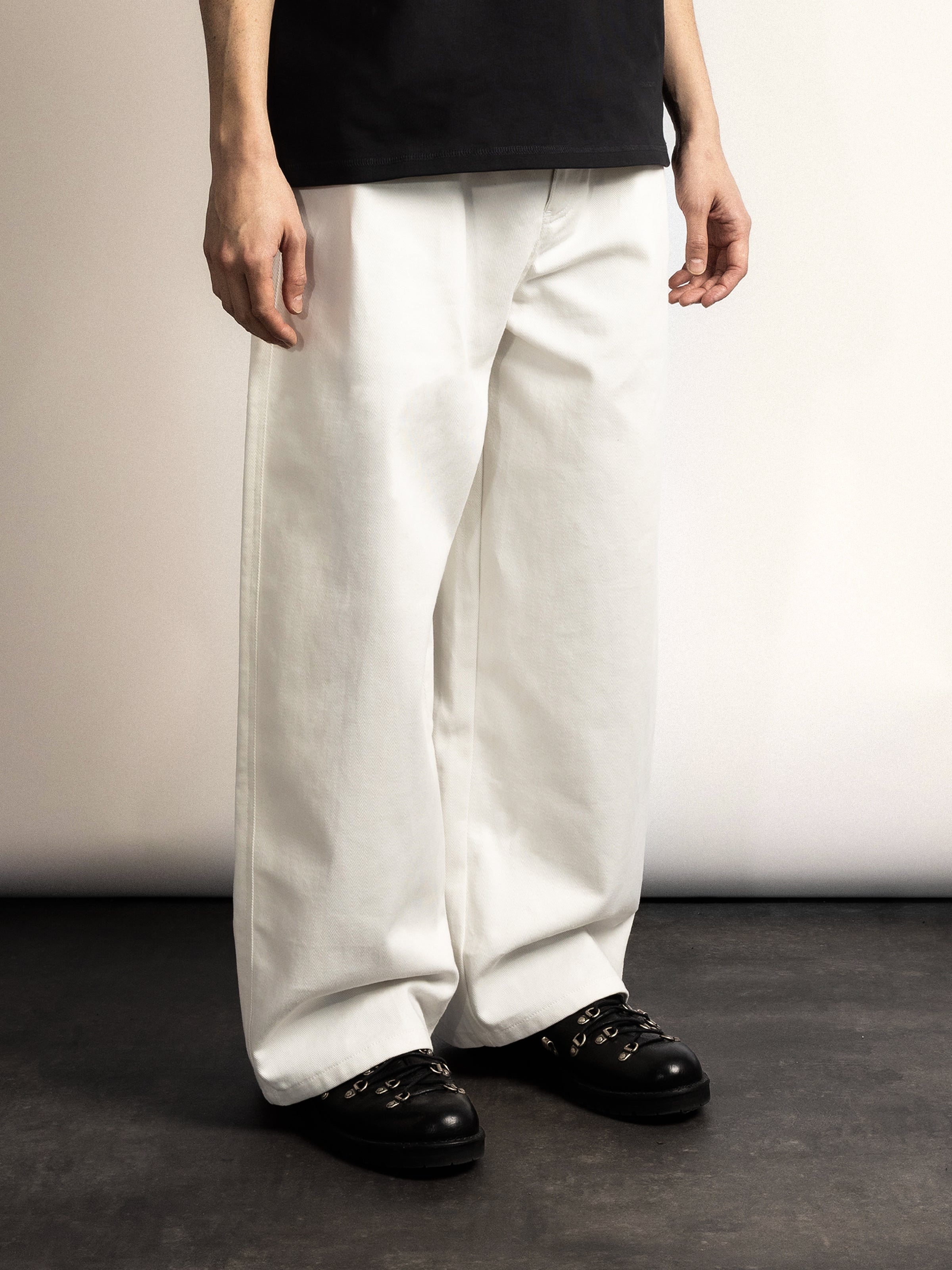 - Wide-leg fit
