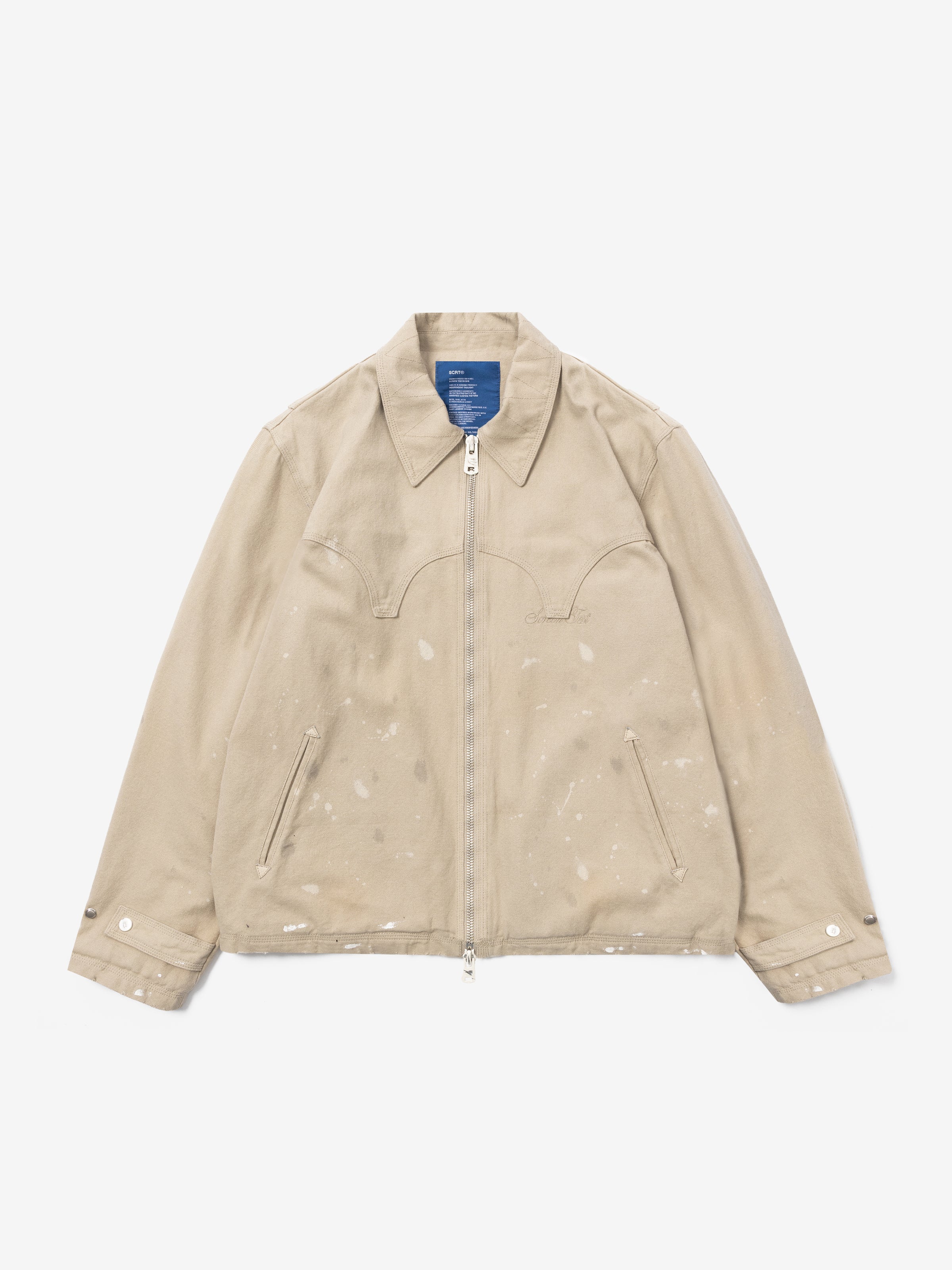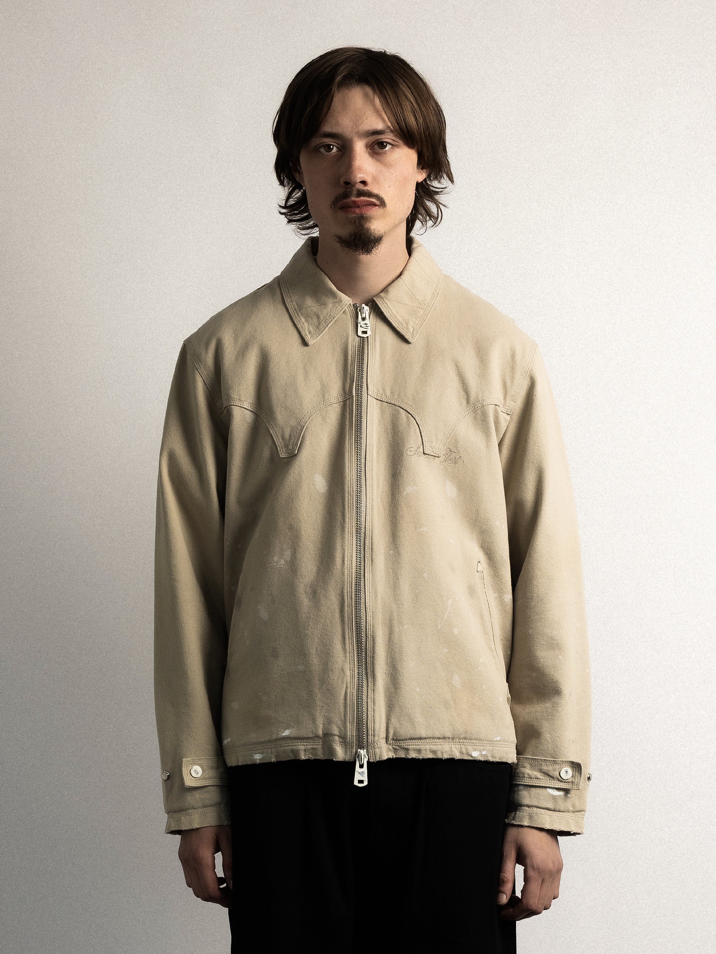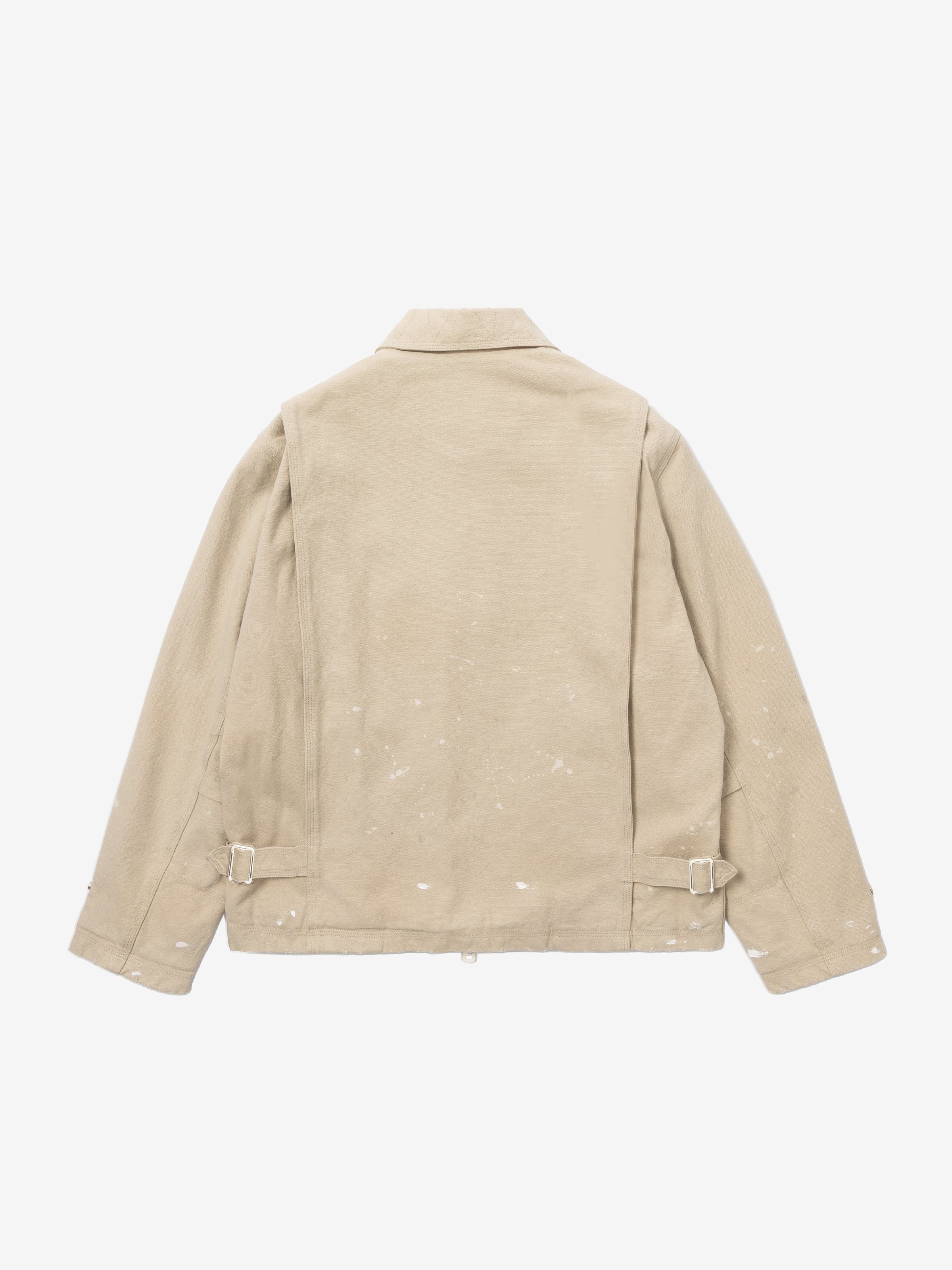 The Stanton Rider Jacket is made from a 420gsm vintage-washed cotton canvas, finished with hand-applied subtle paint splatters and hand-distressed painted metal hardware. Each piece is individually treated, meaning no two jackets are exactly alike.