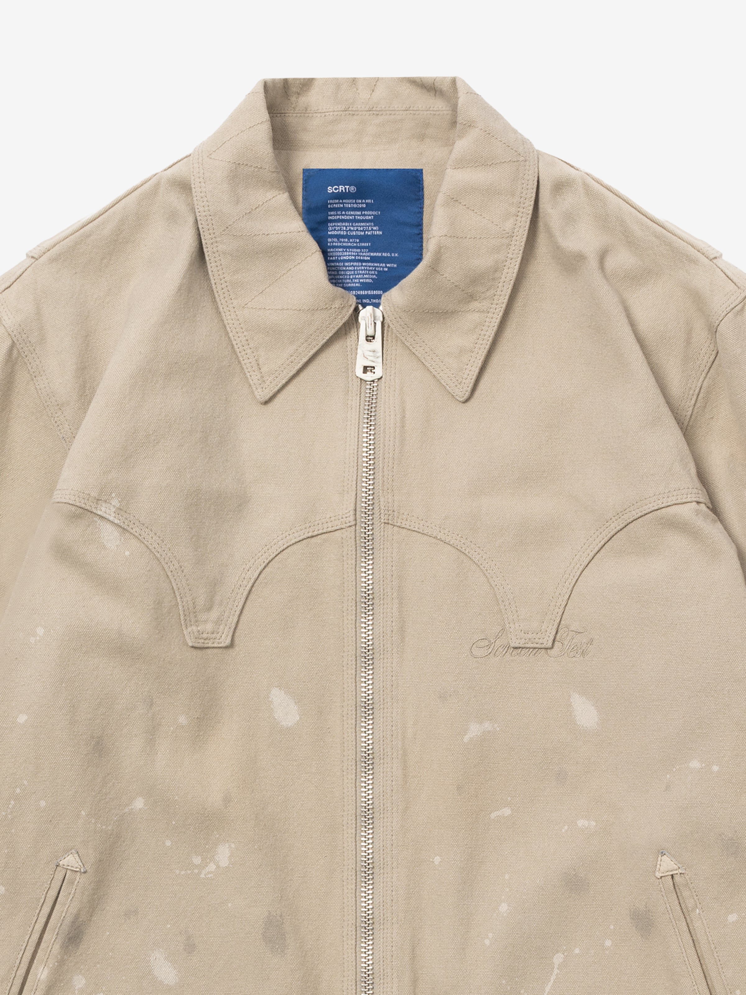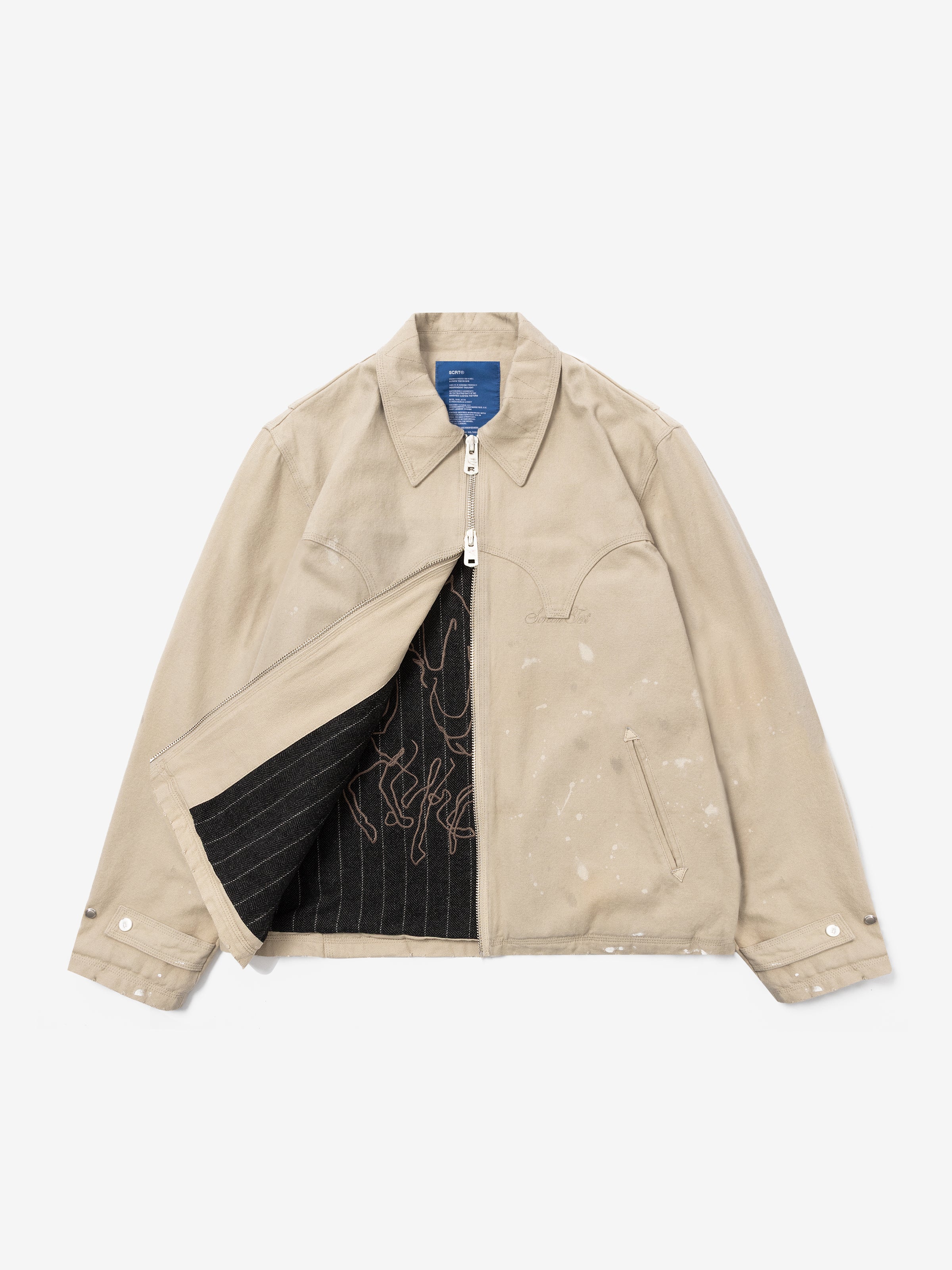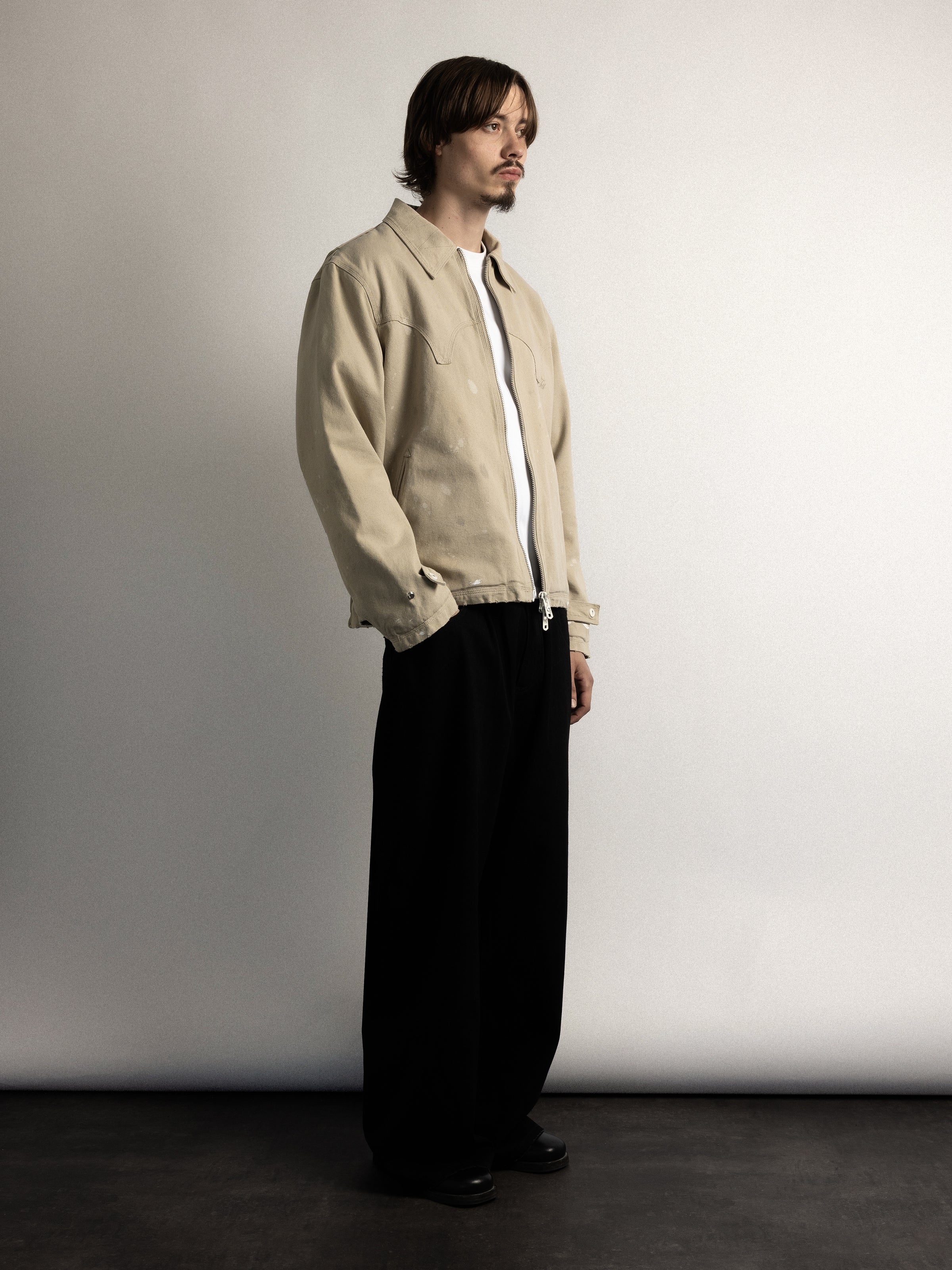 The Stanton Rider Jacket is made from a 420gsm vintage-washed cotton canvas, finished with hand-applied subtle paint splatters and hand-distressed painted metal hardware. Each piece is individually treated, meaning no two jackets are exactly alike.