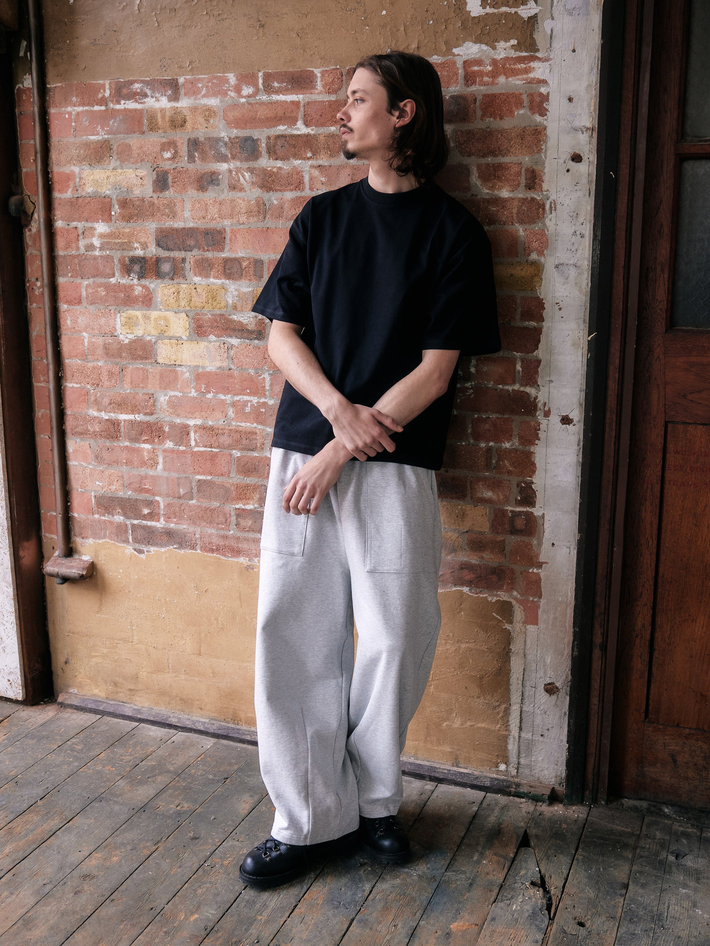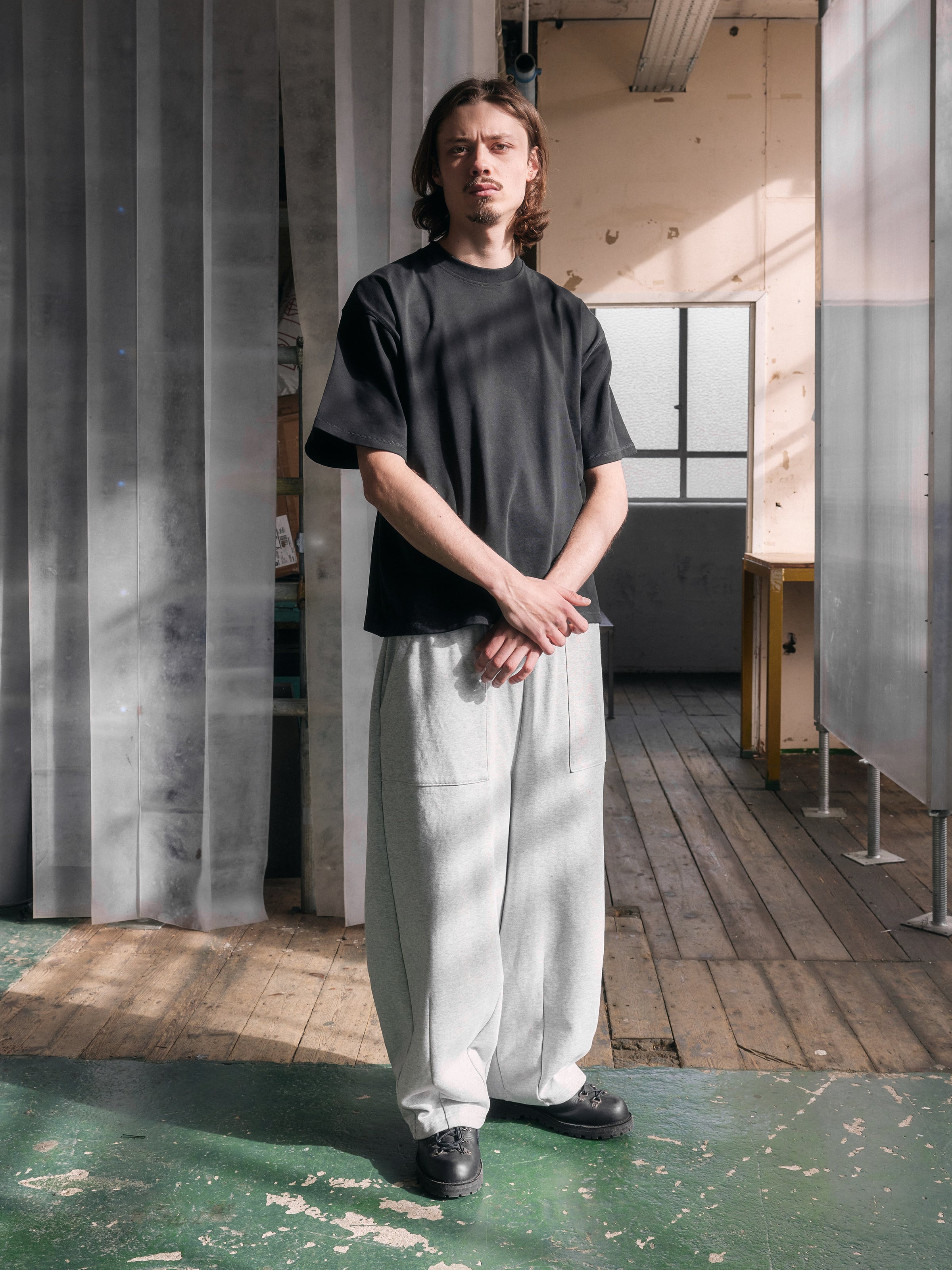 The SUPER-HEAVY® T-Shirt is made from a 100% 400GSM single-weave premium Portuguese cotton, providing a dense, durable structure with minimal stretch and long-lasting shape retention. Extended sleeves and cropped silhouette deliver a precise, structured fit.