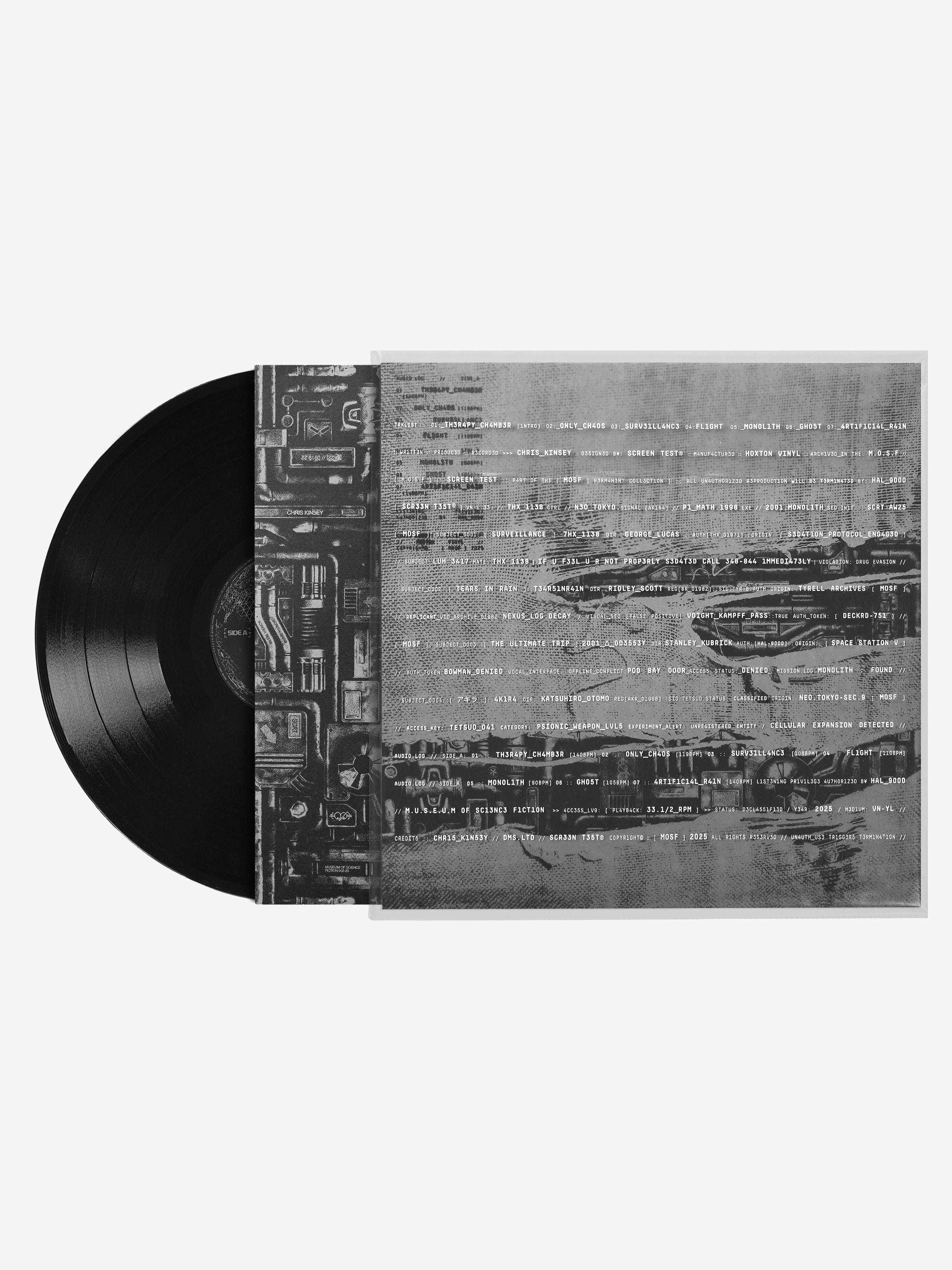 Original score inspired by Museum of Science Fiction references made in collaboration with Chris Kinsey, a composer, producer & sound designer whose interests lie in more left-field styles of electronic music.
