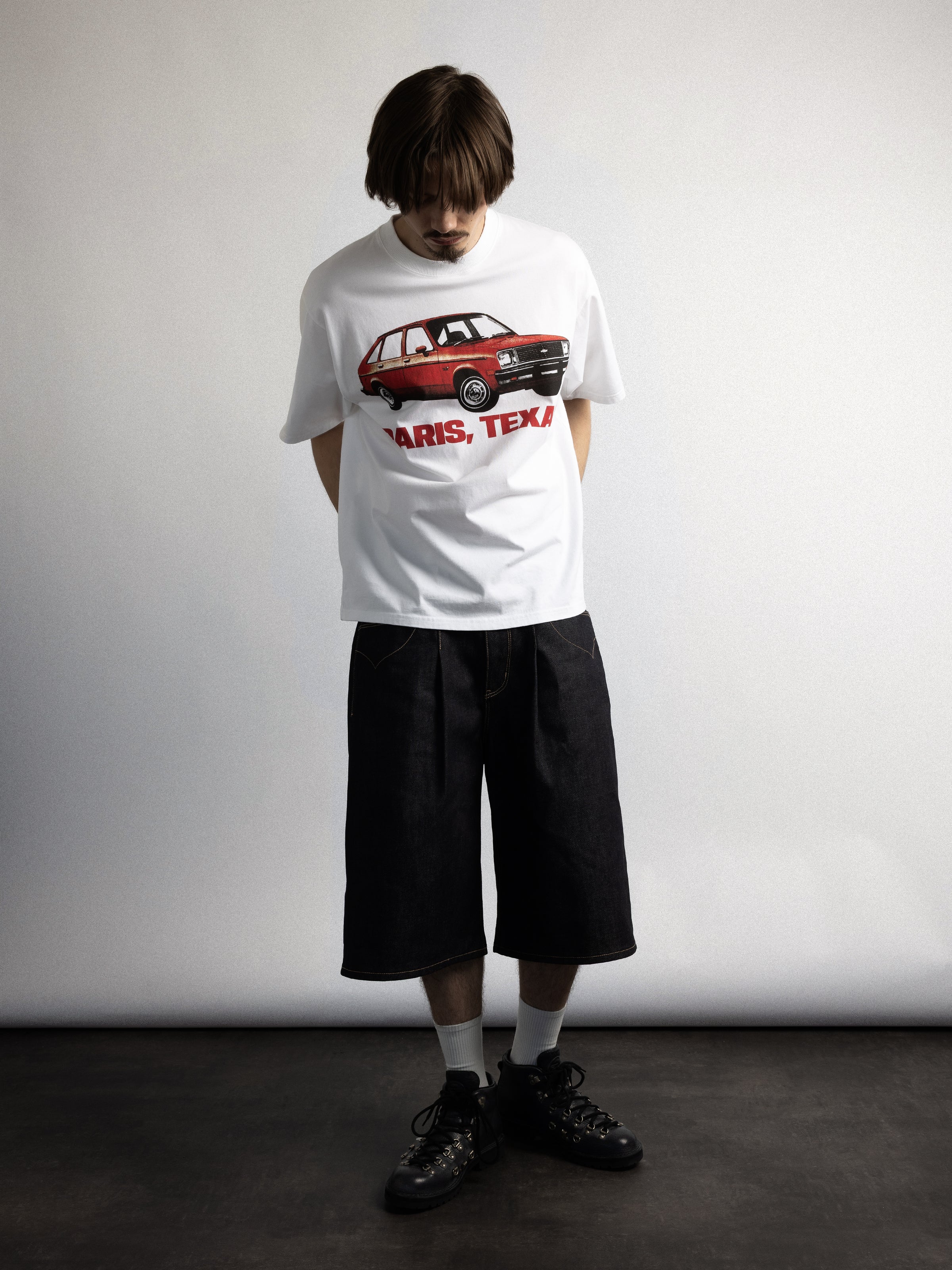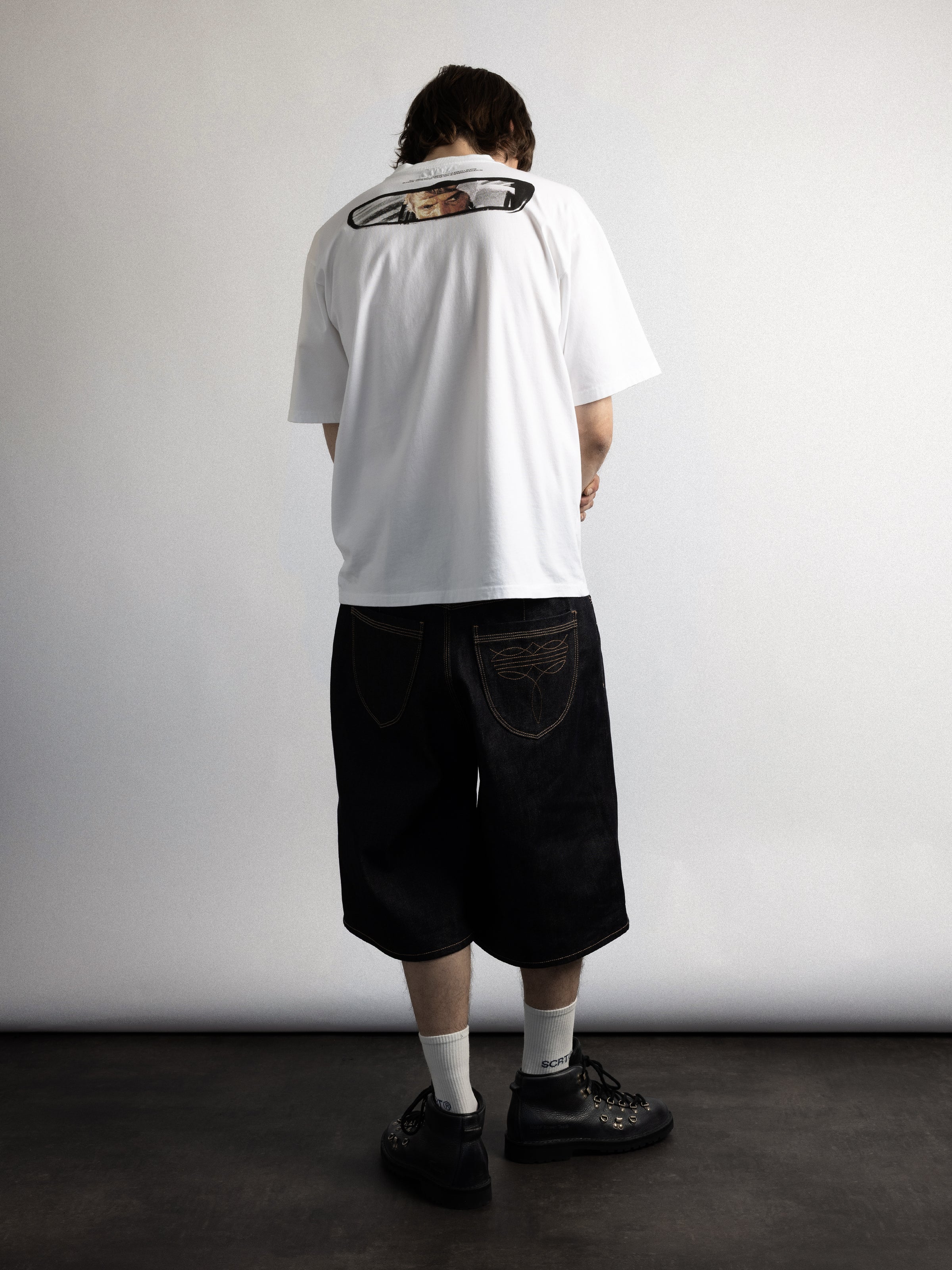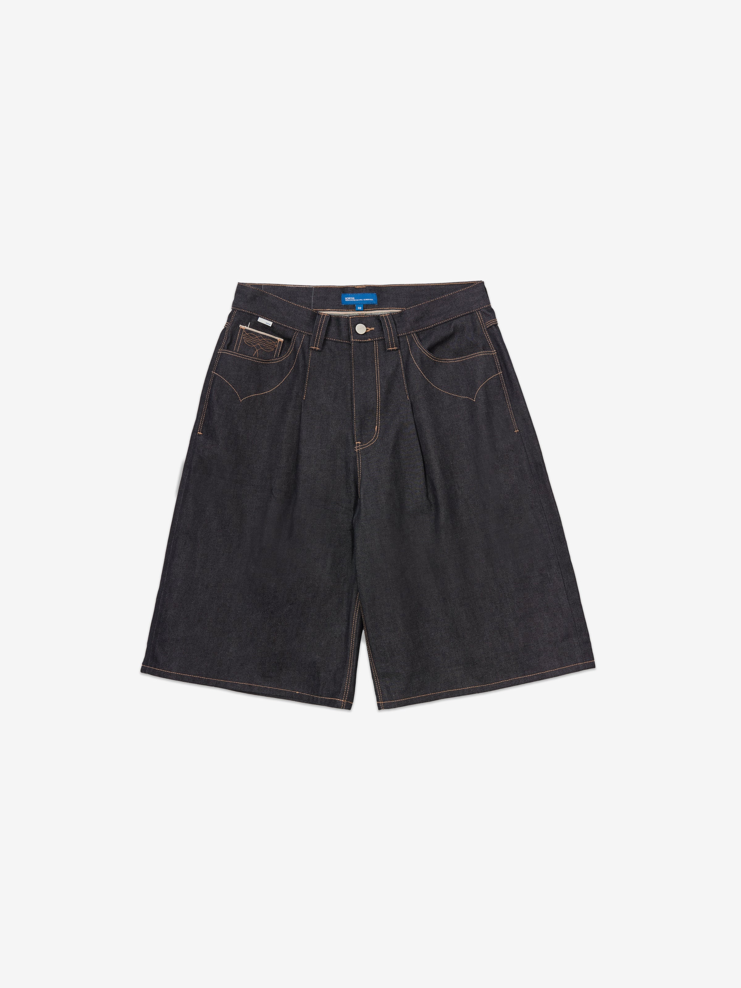The Selvedge Wide Shorts are made from 13oz raw selvedge cotton denim, designed with a structured wide silhouette with topstitched pleats. The rigid denim will soften and develop character over time, unique to each wearer.