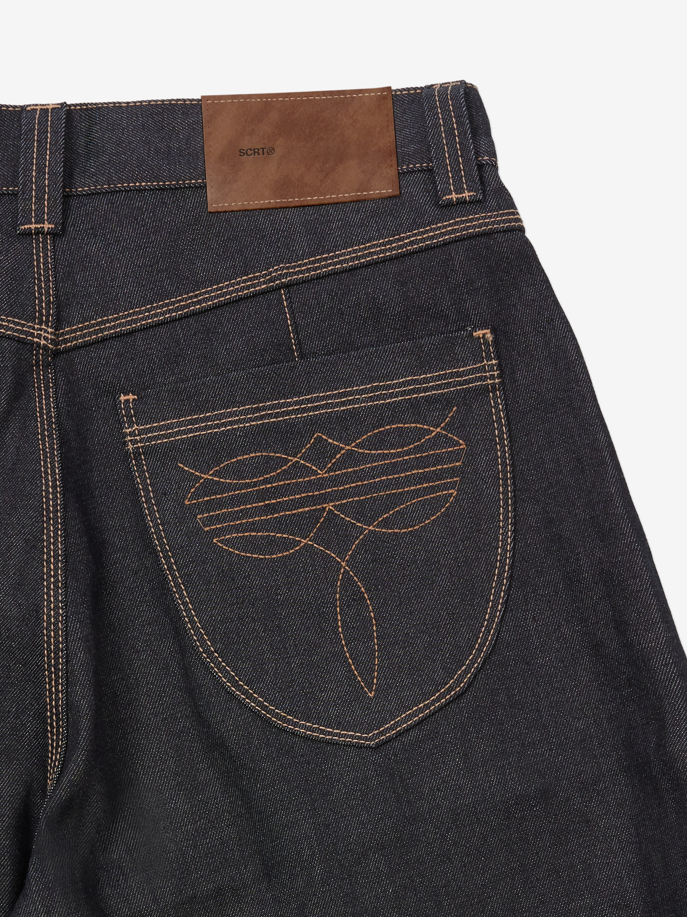 The piece features western-style embroidery on an acorn style pocket, finished with a YKK zip fly and SCRT® branded metal shank buttons.