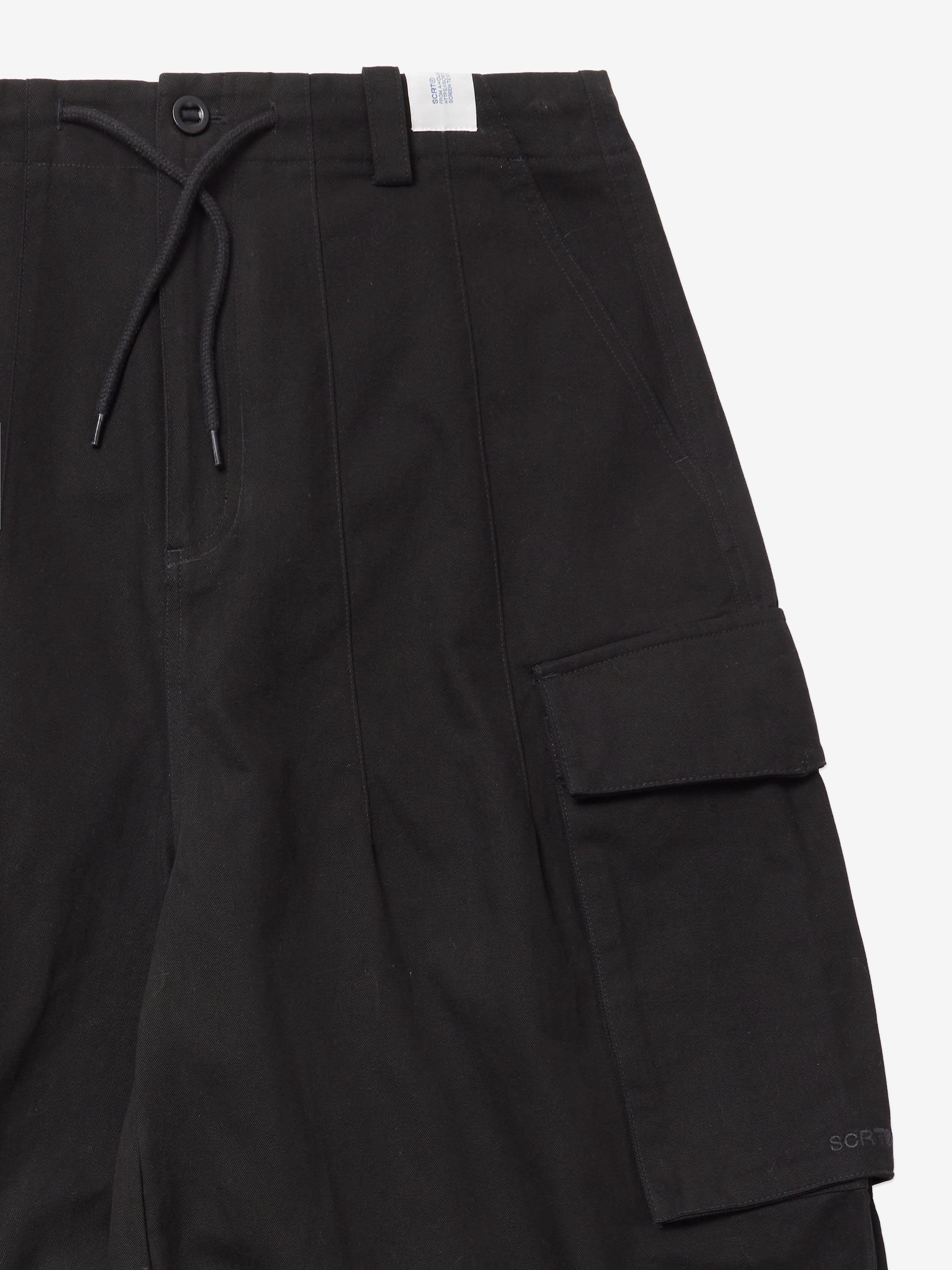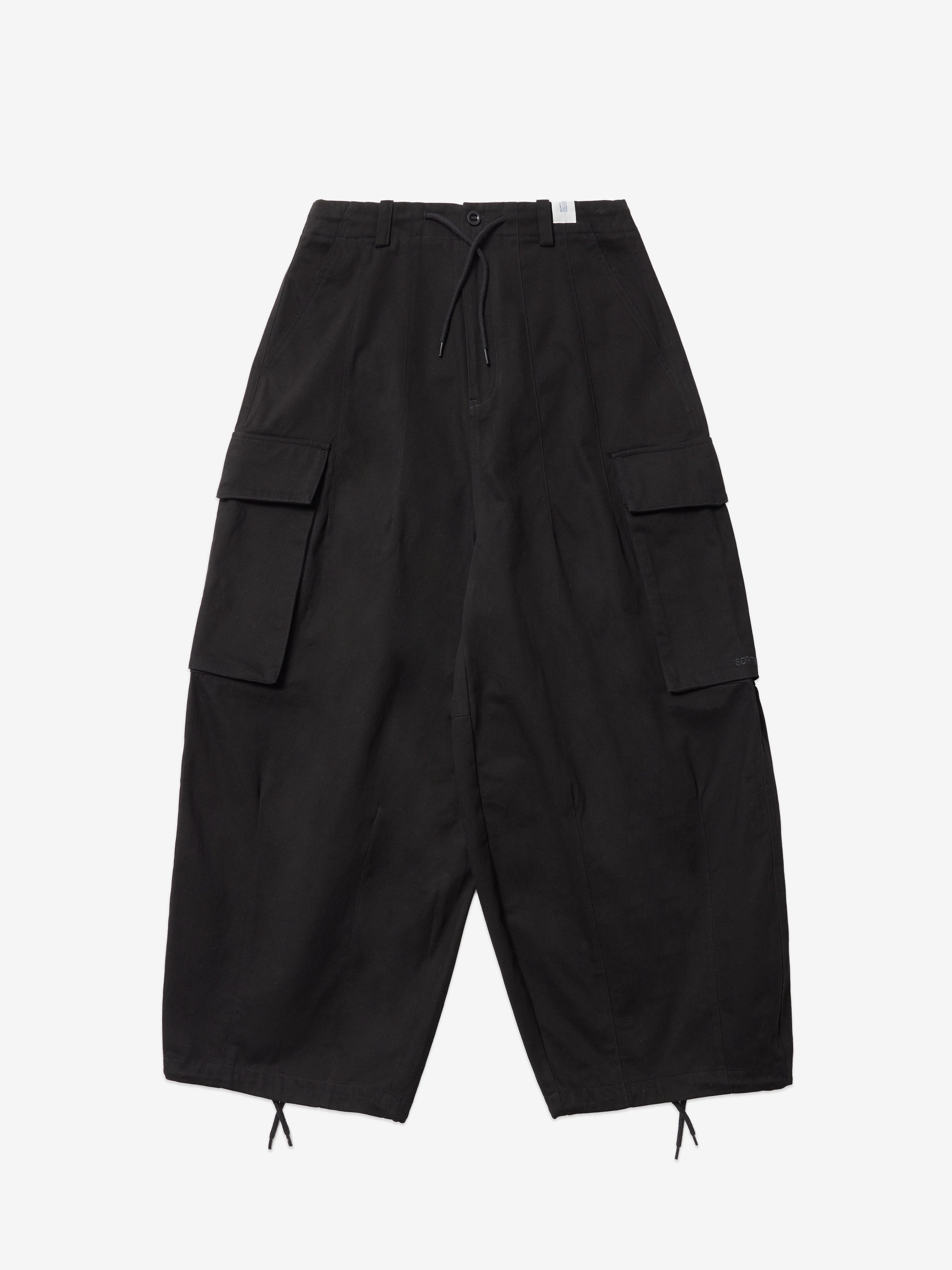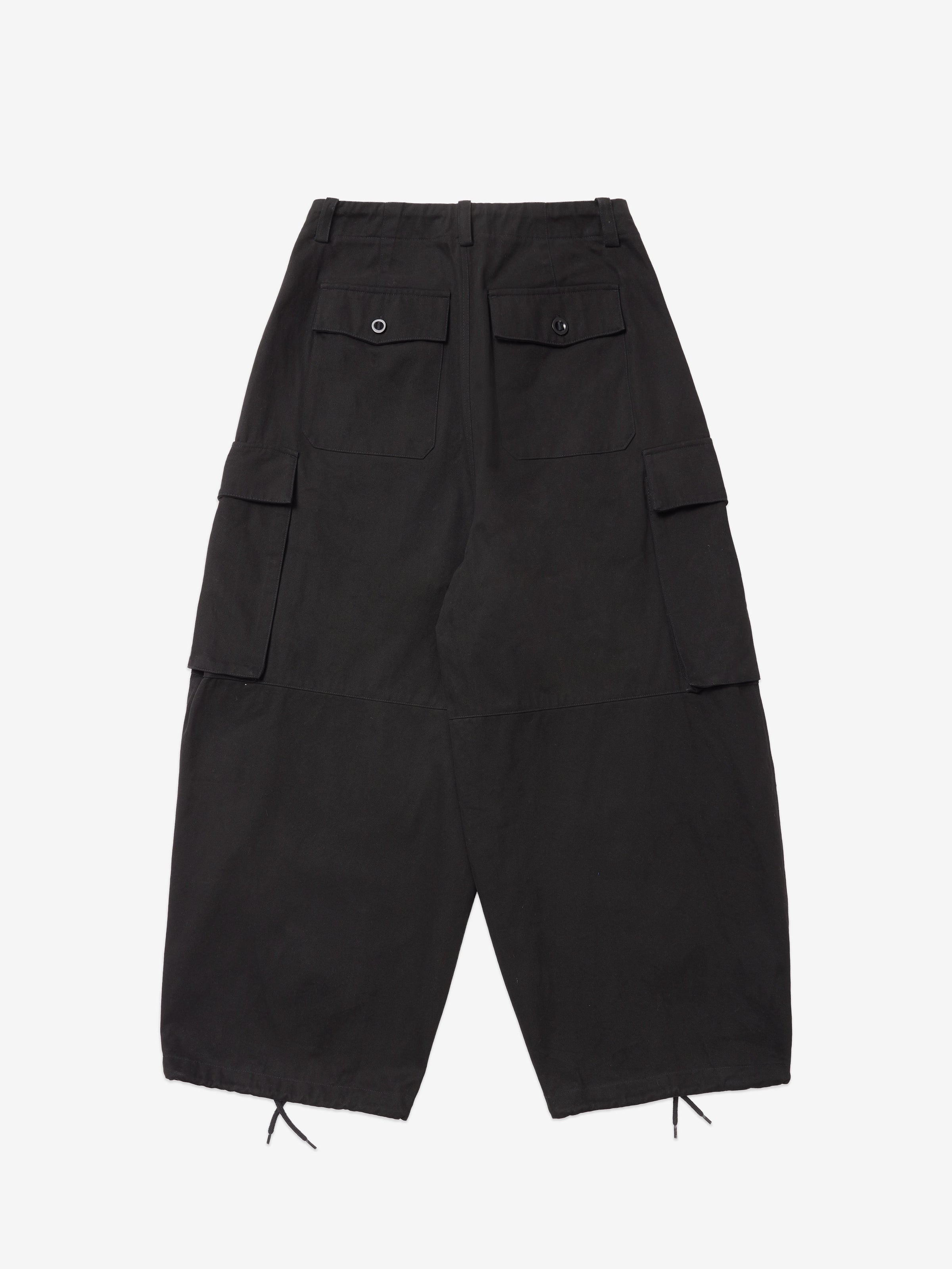 The 1138 BDU Trousers are made from 280GSM cotton micro-twill. They feature 3D cargo pockets with undersized popper closures, a YKK matte metal zip fly, and a custom metal slot button. Adjustable waist and ankle hems allow for a balloon fit. Based on the original military Battle Dress Uniform design, with proportions and detailing informed by science fiction.