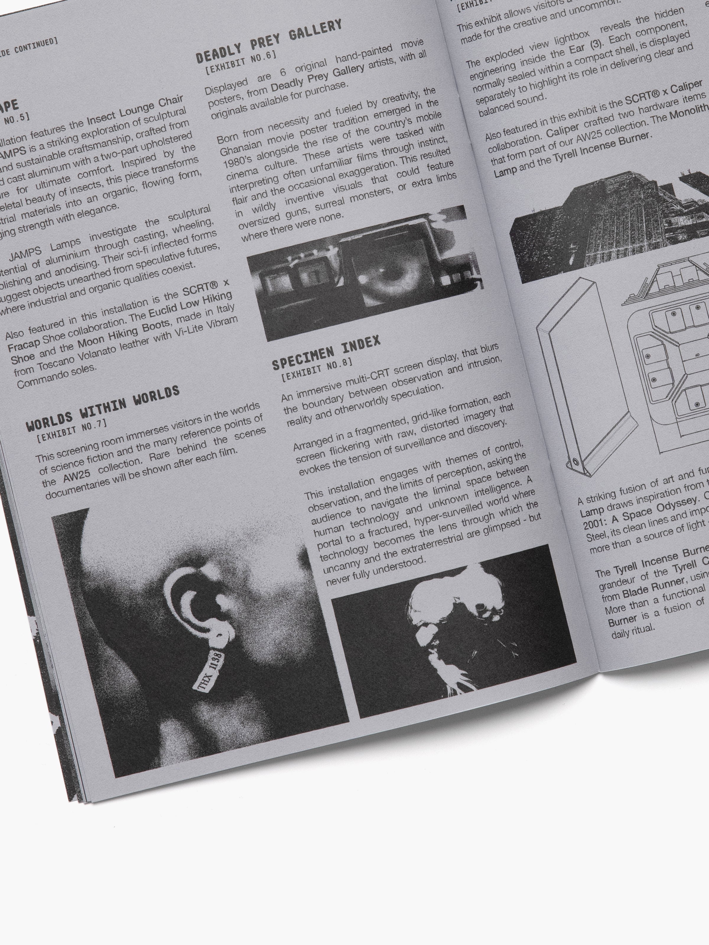 Features highlights of the season's graphics, reference archive and lore, along with descriptions of each Museum exhibit from our collaboration with NOTHING. The brochure also contains features on collaborators whose creativity and expertise brought the Museum of Science Fiction experience to life.