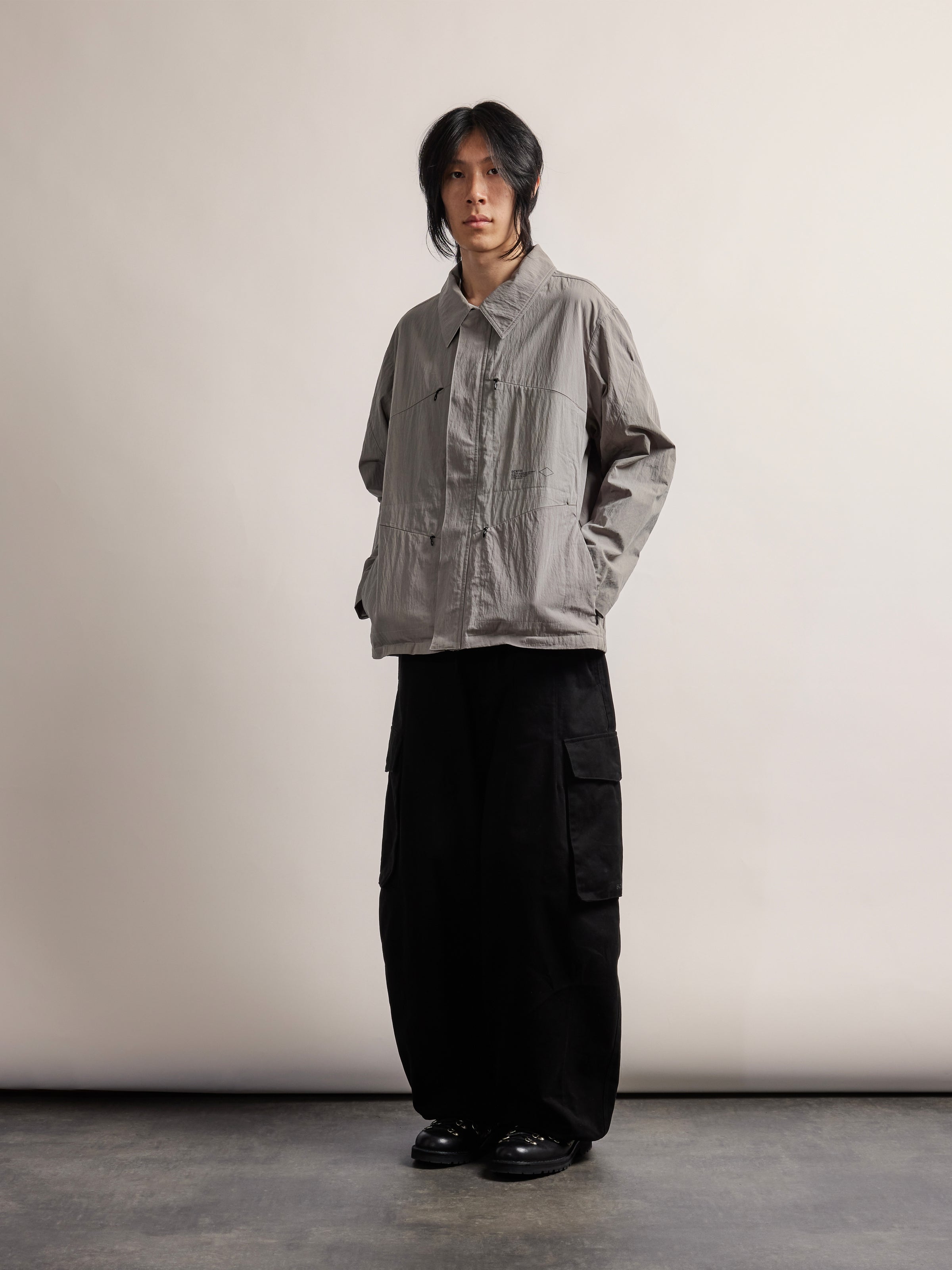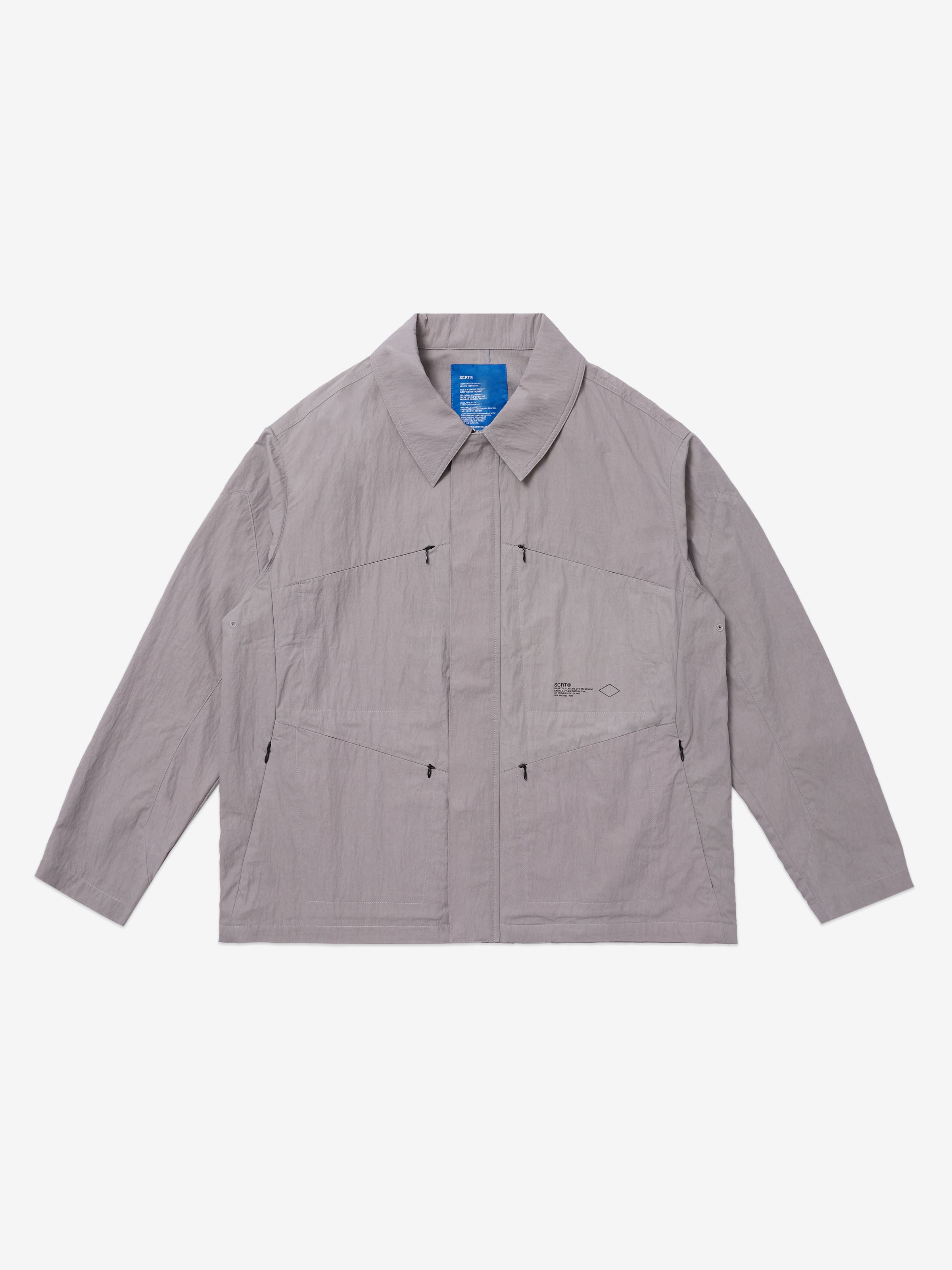 The Robeson Technical Shirt is constructed from a nylon (15%) and cotton (85%) blend, offering durability, breathability, and a lightweight structure. It features invisible zipped pockets with contrast pullers designed to resemble mechanical toggles often seen in science fiction utility gear.