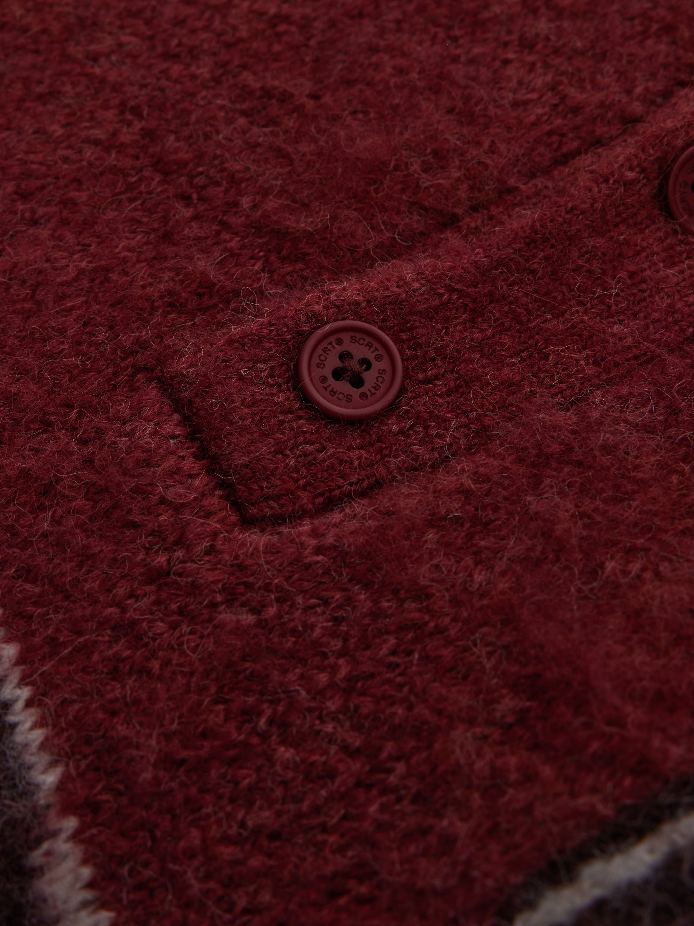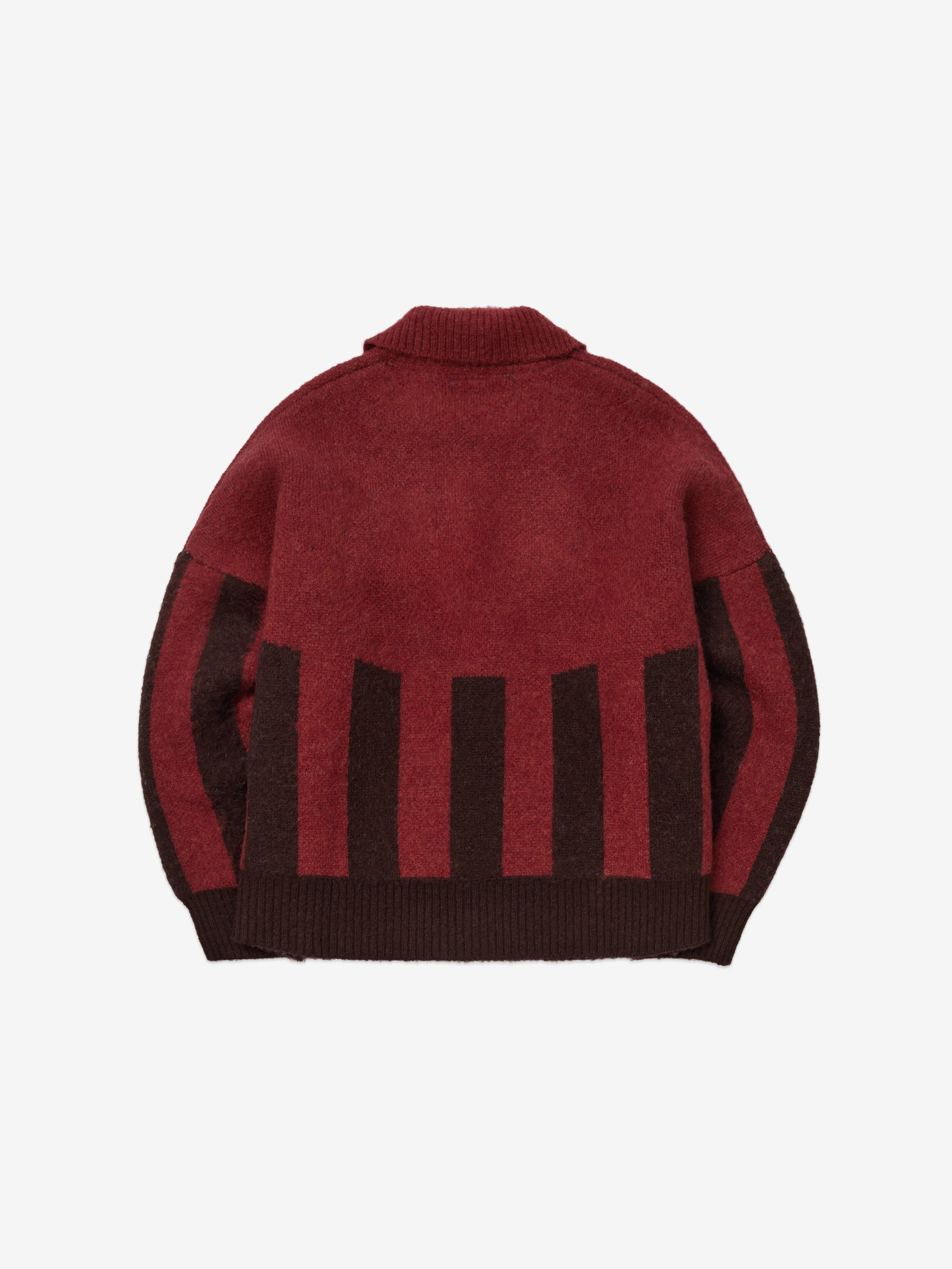 Knitted to be cropped in the body with longer sleeves, the silhouette is relaxed and oversized. Finished with loose ribbed cuffs, an oversized collar and engraved buttons.