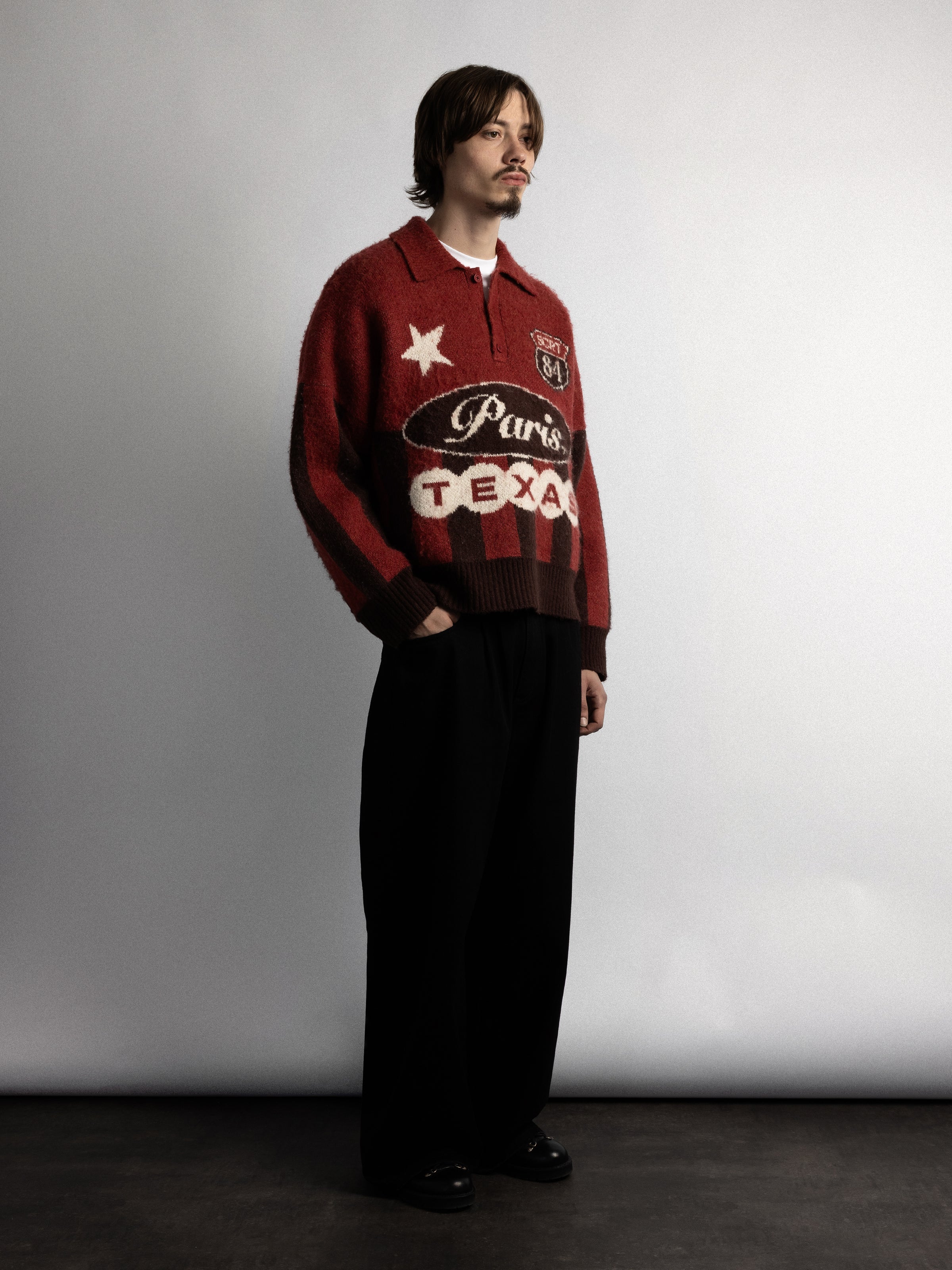 The Paris, Texas Knitted Jersey is knitted from a brushed heavy acrylic/wool-blend in three-colour jacquard.